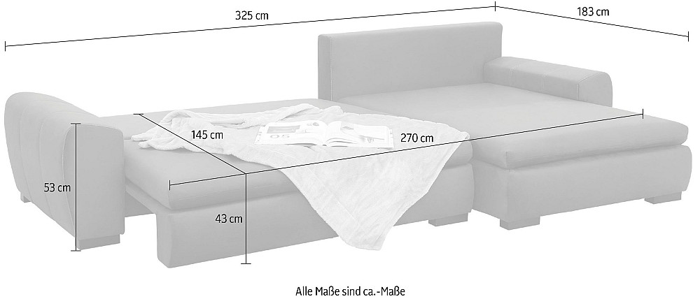 Мягкий универсальный угловой диван "Cara Mia" с функцией спального места и ящиком для постельного белья.