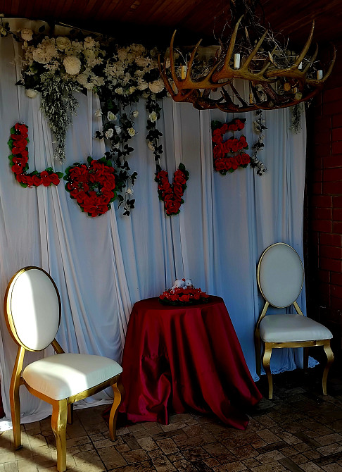 Pilnībā izrotājiet vienu no zālēm vai daļēji . Teritorijas noformējums, ar visu dekorāciju nomu . Pēc izvēles ēdienkarte .25.30.35.40 e. apkalpošana. Didzej+vadošs= 550e(6/st). fotogrāfs visai dienai 400e.