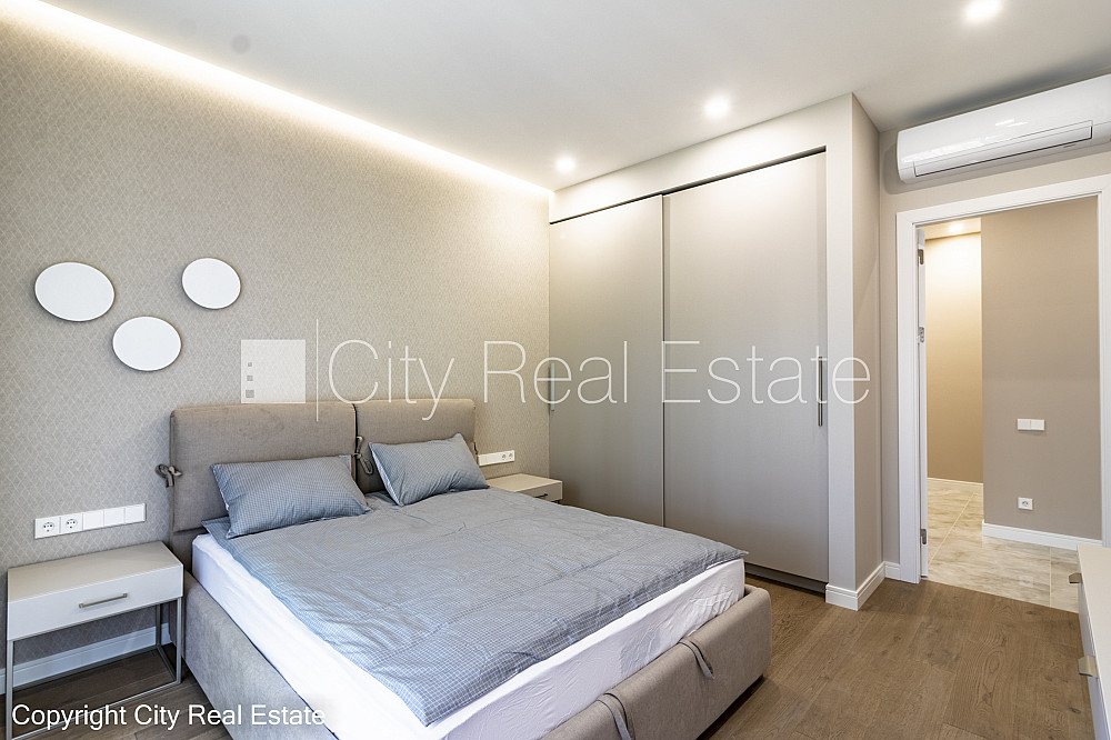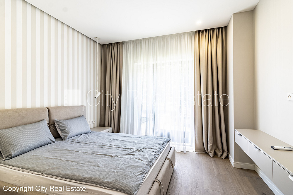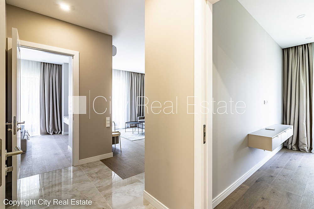 Jaunceltne, labiekārtota apzaļumota teritorija, slēgts pagalms, iežogota teritorija ar metāla sētu, iespēja nomāt pazemes autostāvvietu, ieeja no ielas un pagalma, pagalmā bērnu spēļu laukums, ir lifts, terase, logi vērsti mājas abās pusēs, istabas izolētas, studio tipa, virtuve apvienota ar viesistabu, halle, radiatori ar termoregulatoriem, uzstādīti attīrīšanas filtri aukstajam ūdenim, uzstādīti aukstā ūdens patēriņa skaitītāji, uzstādīti karstā ūdens patēriņa skaitītāji, apkures skaitītāji, individuāla apkures sistēmas uzskaite, pilnā apdare, lielie skatlogi, jauna santehnika, divi sanitārie mezgli, vanna, iebūvēta virtuves iekārta, iebūvēti sienas skapji, gaisa kondicionieris, televizors, ledusskapis, trauku mazgājamā mašīna, indukcijas plīts, cepeškrāsns, veļas mašīna, ir elektroniskais seifs, internets, diennakts videonovērošana, diennakts apsardze, slēgta kāpņu telpa, kāpņu telpā koda atslēga, izīrē ar visu bildēs redzamo aprīkojumu, nodots ekspluatācijā, stratēģiski izdevīga vieta, CITY REAL ESTATE ID - 510315