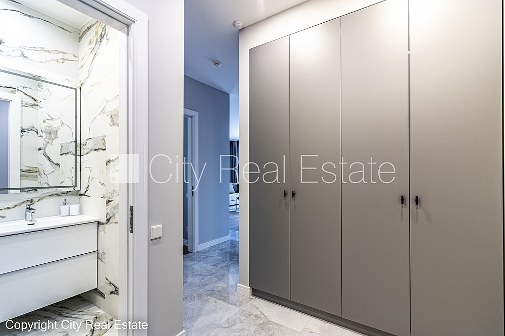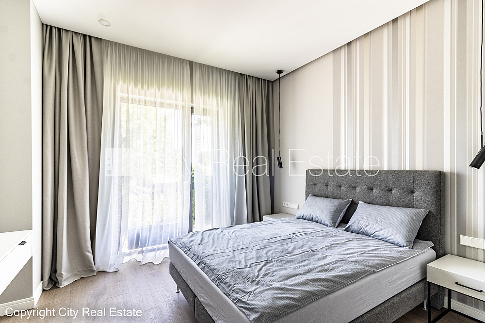 Jaunceltne, labiekārtota apzaļumota teritorija, slēgts pagalms, iežogota teritorija ar metāla sētu, iespēja nomāt pazemes autostāvvietu, ieeja no ielas un pagalma, ir lifts, terase, logi vērsti mājas abās pusēs, istabas izolētas, studio tipa, virtuve apvienota ar viesistabu, halle, radiatori ar termoregulatoriem, uzstādīti attīrīšanas filtri aukstajam ūdenim, uzstādīti aukstā ūdens patēriņa skaitītāji, uzstādīti karstā ūdens patēriņa skaitītāji, apkures skaitītāji, individuāla apkures sistēmas uzskaite, pilnā apdare, divi sanitārie mezgli, dušas kabīne, iebūvēta virtuves iekārta, iebūvēti sienas skapji, gaisa kondicionieris, televizors, ledusskapis, trauku mazgājamā mašīna, indukcijas plīts, cepeškrāsns, veļas mašīna, ir elektroniskais seifs, internets, diennakts videonovērošana, diennakts apsardze, slēgta kāpņu telpa, kāpņu telpā koda atslēga, izīrē ar visu bildēs redzamo aprīkojumu, atbrīvots, nodots ekspluatācijā, stratēģiski izdevīga vieta, cena vasaras sezonā - 3500.00 EUR, CITY REAL ESTATE ID - 510314