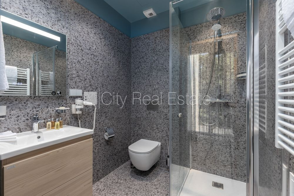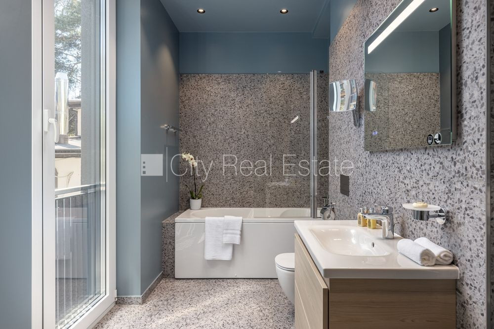 Jaunceltne, fasādes māja, zaļā teritorija, labiekārtots apzaļumots pagalms, pazemes autostāvvieta, ieeja no ielas, apzaļumota teritorija ar jaunu kokaugu stādījumiem, luksuss apartamenti 104 m2, ir lifts, balkons 6,4 m2, terase 15,2 m2, logi vērsti mājas abās pusēs, guļamistabu skaits 3 gab., istabas izolētas 3 gab., studio tipa, virtuve apvienota ar viesistabu, radiatori ar termoregulatoriem, apkures skaitītāji, individuāla apkures sistēmas uzskaite, pilnā apdare, apsildāmas grīdas, lielie skatlogi, parketa grīda, flīžu grīdas segums, divi sanitārie mezgli, vanna, dušas kabīne, iebūvēta virtuves iekārta, iebūvēti sienas skapji, stūra dīvāns, divguļamā gulta, virtuves galds, krēsli, gaisa kondicionieris, televizors, trauku mazgājamā mašīna, indukcijas plīts, cepeškrāsns, tvaika nosūcējs, mikroviļņu krāsns, veļas mašīna, internets, diennakts videonovērošana, izīrē ar visu bildēs redzamo aprīkojumu, atbrīvots, līdz parkam 360 m, stratēģiski izdevīga vieta, līdz jūrai 260 m, cena vasaras sezonā - 11000.00 EUR, CITY REAL ESTATE ID - 517100