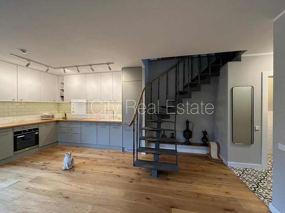 Jaunceltne, zaļā teritorija, labiekārtota apzaļumota teritorija, labiekārtots apzaļumots pagalms, slēgts pagalms, vieta automašīnai, ieeja no ielas, apzaļumota teritorija ar jaunu kokaugu stādījumiem, logi vērsti mājas abās pusēs, guļamistabu skaits 3 gab., istabas izolētas 3 gab., studio tipa, virtuve apvienota ar viesistabu, radiatori ar termoregulatoriem, apkures skaitītāji, individuāla apkures sistēmas uzskaite, divos līmeņos, apsildāma grīda vannas istabā, parketa grīda, flīžu grīdas segums, divi sanitārie mezgli, vanna, dušas kabīne, iebūvēta virtuves iekārta, iebūvēti sienas skapji, ledusskapis, trauku mazgājamā mašīna, indukcijas plīts, cepeškrāsns, tvaika nosūcējs, veļas mašīna, diennakts videonovērošana, izīrē ar visu bildēs redzamo aprīkojumu, atbrīvots, izvēloties šo īpašumu, komisijas maksa par starpniecības pakalpojumiem ir vienāda ar vienu pusi (50%) no šī īpašuma viena mēneša īres maksas, CITY REAL ESTATE ID - 517185