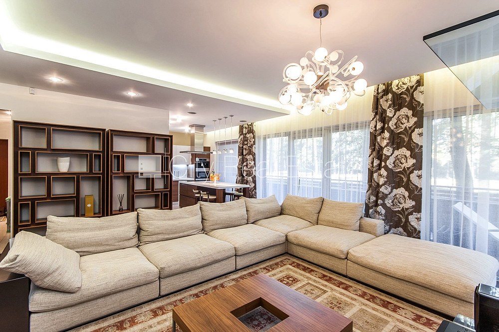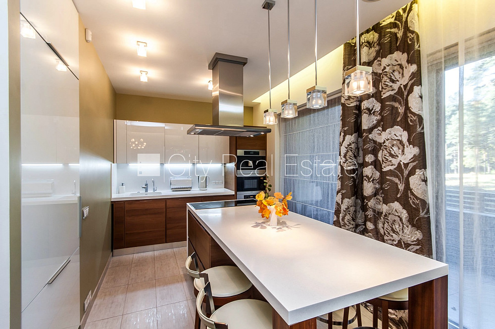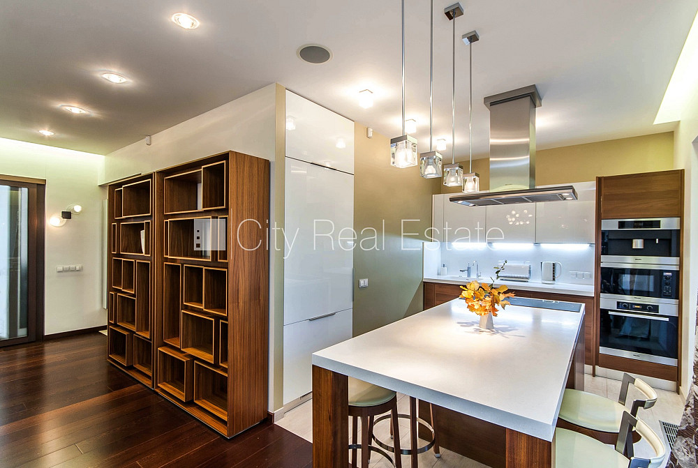 Jaunceltne, zaļā teritorija, garāža divām automašīnām, apzaļumota teritorija ar jaunu kokaugu stādījumiem, luksuss apartamenti 137 m2, terase 22,5 m2, logi vērsti mājas abās pusēs, gaisa ventilācijas sistēma, istabas izolētas 2 gab., studio tipa, virtuve apvienota ar viesistabu 57,3 m2, kamīns, apkures skaitītāji, individuāla apkures sistēmas uzskaite, pilnā apdare, apsildāma grīda vannas istabā, lielie skatlogi, paklāja grīdas segums, parketa grīda, flīžu grīdas segums, divi sanitārie mezgli, dušas kabīne, iebūvēta virtuves iekārta, iebūvēti sienas skapji, stūra dīvāns, divguļamā gulta, televizors, ledusskapis, trauku mazgājamā mašīna, indukcijas plīts, tvaika nosūcējs, mikroviļņu krāsns, veļas mašīna, diennakts videonovērošana, diennakts apsardze, stratēģiski izdevīga vieta, līdz Baltijas jūrai 50 m, CITY REAL ESTATE ID - 517552