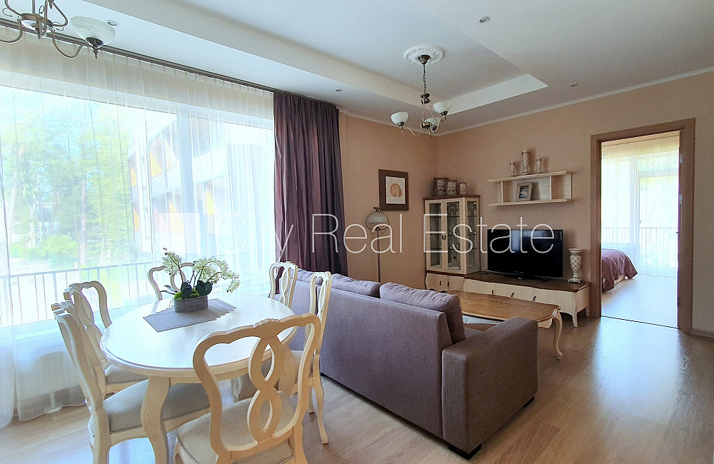 Projekts - Turaidas Kvartāls, zeme īpašumā, jaunceltne, labiekārtota apzaļumota teritorija, bruģēts piebraucamais ceļš, slēgta teritorija, pazemes autostāvvieta, apsargāta teritorija, pagalmā bērnu spēļu laukums, ir lifts, trīs balkoni, logi vērsti uz parka pusi, plašs skats no loga, guļamistabu skaits 3 gab., studio tipa, virtuve apvienota ar viesistabu, garderobe, automatizēta apkures sistēma, apkures skaitītāji, individuāla apkures sistēmas uzskaite, pilnā apdare, lielie skatlogi, koka stikla pakešu logi, lamināta parketa grīda, flīžu grīdas segums, divi sanitārie mezgli, vanna, dušas kabīne, bidē, iebūvēta virtuves iekārta, iebūvēti sienas skapji, divguļamā gulta, ledusskapis, trauku mazgājamā mašīna, elektriskā plīts, cepeškrāsns, veļas mašīna, internets, kabeļtelevīzija, dūmu detektors, video domofons, viedkaršu caurlaides sistēma, projektā vēl pieejami dzīvokļi, stratēģiski izdevīga vieta, līdz jūrai 300 m, CITY REAL ESTATE ID - 425683