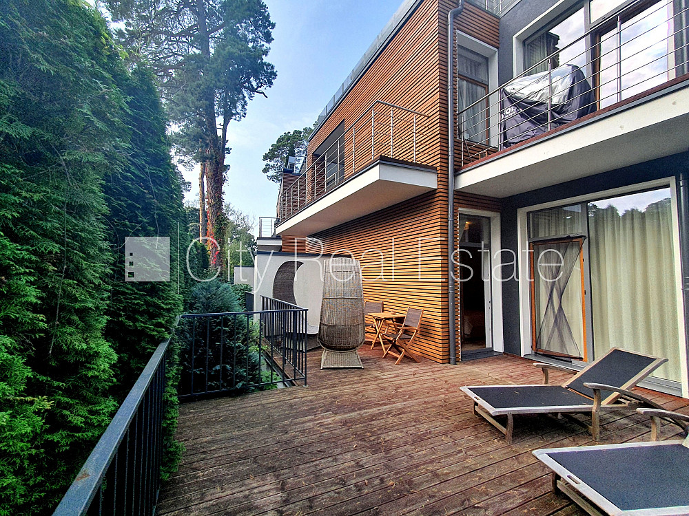 Zeme īpašumā, jaunceltne, fasādes māja, dzīvokļu skaits ēkā 12 gab., labiekārtots apzaļumots pagalms, bruģēts piebraucamais ceļš, iežogota teritorija, teritorijas iebrauktuves vārti aprīkoti ar automatizētu atvēršanās un aizvēršanās sistēmu, garāža vienai automašīnai, pazemes autostāvvieta, franču balkons, terase, logi vērsti mājas abās pusēs, guļamistabu skaits 2 gab., studio tipa, virtuve apvienota ar viesistabu, augstie griesti, radiatori ar termoregulatoriem, automatizēta apkures sistēma, apkures skaitītāji, individuāla apkures sistēmas uzskaite, pilnā apdare, lielie skatlogi, jauna santehnika, parketa grīda, flīžu grīdas segums, divi sanitārie mezgli, iebūvēta virtuves iekārta, iebūvēti sienas skapji, stūra dīvāns, divguļamā gulta, galds, krēsli, gaisa kondicionieris, televizors, ledusskapis, trauku mazgājamā mašīna, elektriskā plīts, cepeškrāsns, veļas mašīna, optiskais internets, signalizācija, pārdod ar visu bildēs redzamo aprīkojumu, līdz parkam 300 m, stratēģiski izdevīga vieta, līdz jūrai 700 m, izskatīsim īpašuma maiņas variantus, CITY REAL ESTATE ID - 424743