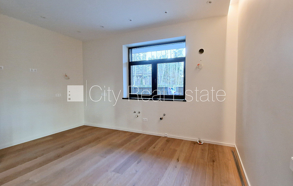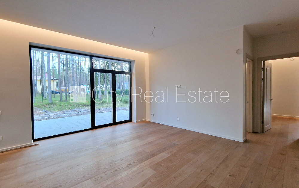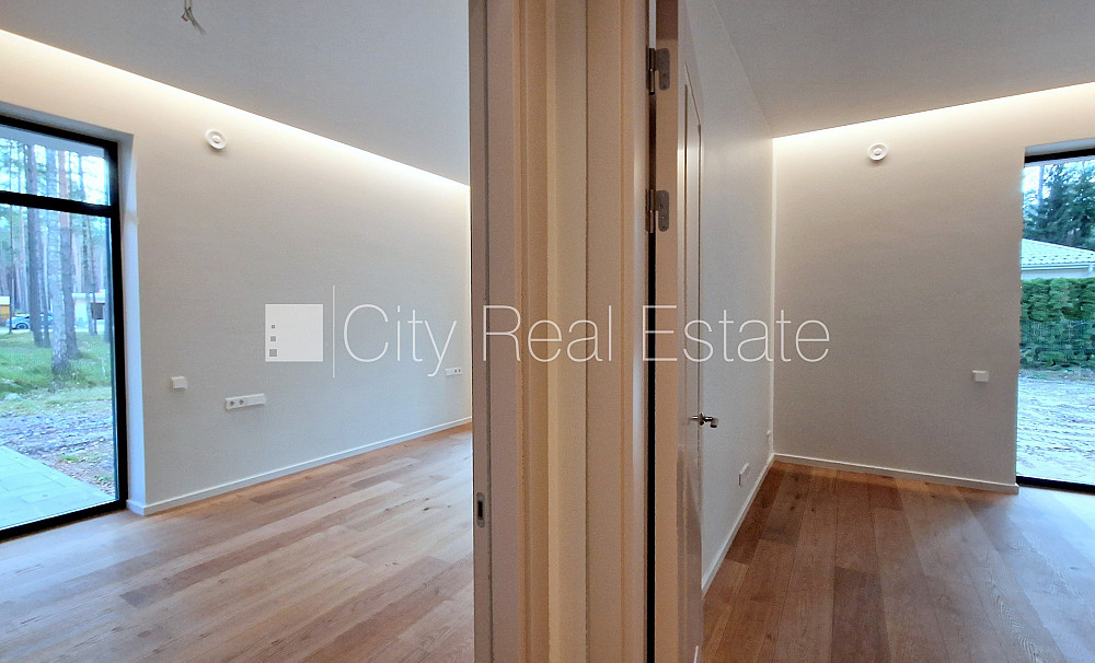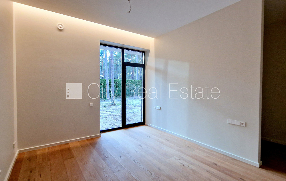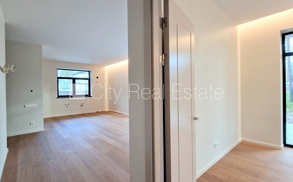 Zeme īpašumā, jaunceltne, dzīvokļu skaits ēkā 5 gab., labiekārtota apzaļumota teritorija, bruģēts piebraucamais ceļš, iežogota teritorija, teritorijas iebrauktuves vārti aprīkoti ar automatizētu atvēršanās un aizvēršanās sistēmu, bezmaksas stāvvieta pagalmā, pirmais stāvs ar dārzu, terase 32 m2, guļamistabu skaits 2 gab., studio tipa, virtuve apvienota ar viesistabu, garderobe, griestu augstums 3 m, automatizēta apkures sistēma, apkures skaitītāji, individuāla apkures sistēmas uzskaite, pilnā apdare, apsildāmas grīdas istabās, lielie skatlogi, alumīnija stikla pakešu logi, jauna santehnika, parketa grīda, divi sanitārie mezgli, vanna, dušas kabīne, optiskais internets, signalizācija, kāpņu telpā koda atslēga, projektā vēl pieejami dzīvokļi, nodots ekspluatācijā 2023 gadā, atrodas blakus mežam 50 m, izkopts meža parks ar gājēju celiņiem, saimnieka īpašums, reģistrēts zemesgrāmatā, līdz Rīgai 22 km, līdz parkam 300 m, stratēģiski izdevīga vieta, līdz jūrai 600 m, CITY REAL ESTATE ID - 426761