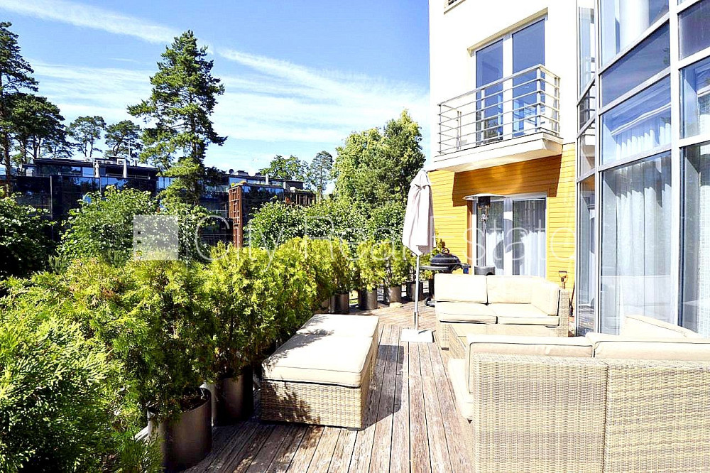Zeme īpašumā, jaunceltne, monolīta betona sienas, pagrabstāvā pieejama noliktava, labiekārtota apzaļumota teritorija, bruģēts piebraucamais ceļš, teritorijas iebrauktuves vārti aprīkoti ar automatizētu atvēršanās un aizvēršanās sistēmu, garāža divām automašīnām, pazemes autostāvvieta, pagalmā bērnu spēļu laukums, luksuss apartamenti 200 m2, ir lifts, lodžija, divas terases 53 m2, plašs skats no loga, gaisa ventilācijas sistēma, gaisa kondicionēšanas sistēma, guļamistabu skaits 3 gab., studio tipa, virtuve apvienota ar viesistabu, garderobe, halle, augstie griesti, kamīns, automatizēta apkures sistēma, apkures skaitītāji, individuāla apkures sistēmas uzskaite, pilnā apdare, lielie skatlogi, parketa grīda, flīžu grīdas segums, trīs sanitārie mezgli, dušas kabīne, džakūzī vanna, tualete, iebūvēta virtuves iekārta, iebūvēti sienas skapji, izvelkamais stūra dīvāns, divguļamā gulta, galds, krēsli, gaisa kondicionieris, televizors, ledusskapis, trauku mazgājamā mašīna, elektriskā plīts, cepeškrāsns, veļas mašīna, optiskais internets, signalizācija, diennakts videonovērošana, viedkaršu caurlaides sistēma, stratēģiski izdevīga vieta, līdz jūrai 200 m, CITY REAL ESTATE ID - 513806