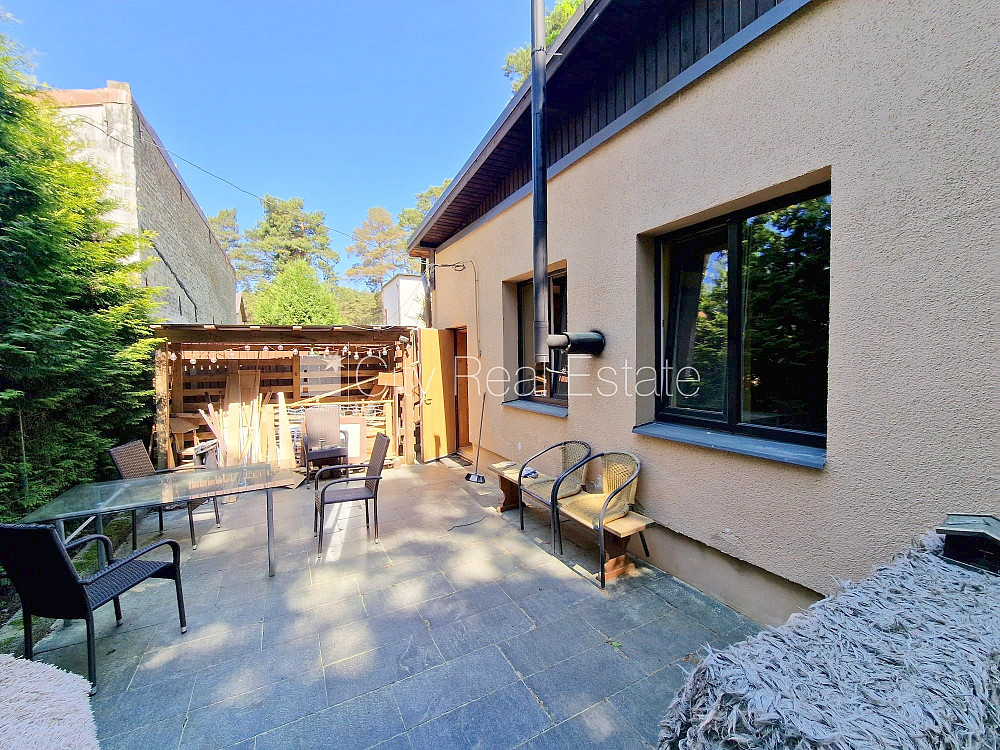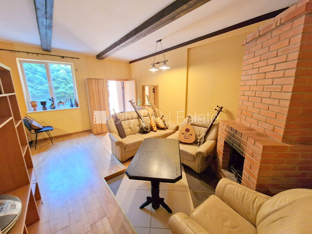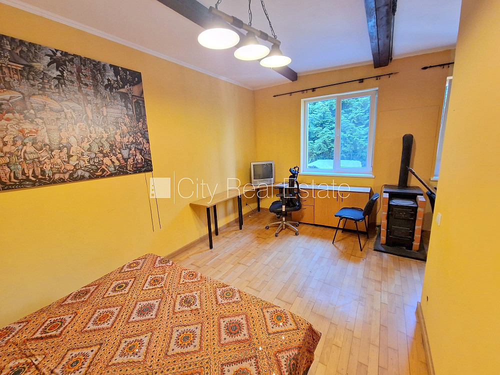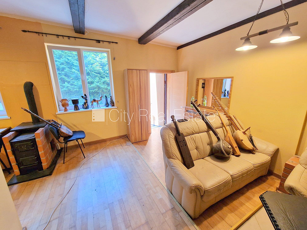 Puse mājas, labiekārtots apzaļumots pagalms, vieta automašīnai, ieeja no pagalma, terase, logi vērsti uz pagalma pusi, viesistaba, virtuve, augstie griesti, kamīns, cietā kurināmā apkure, plastikāta stikla pakešu logi, krāsotas sienas, jauna santehnika, lamināta parketa grīda, sanitārais mezgls apvienots, dušas kabīne, tualete, iebūvēta virtuves iekārta, dīvāns, gulta , skapis, televizors, ledusskapis, gāzes plīts, veļas mašīna, izīrē ar visu bildēs redzamo aprīkojumu, uz vienu mēnesi, uz diviem mēnešiem, uz trīs mēnešiem, atbrīvots, slēdzot īres līgumu, Jums būs jāmaksā par pirmo īres mēnesi , kā arī jāiemaksā drošības depozīts viena mēneša īres maksas apmērā, CITY REAL ESTATE ID - 516404
