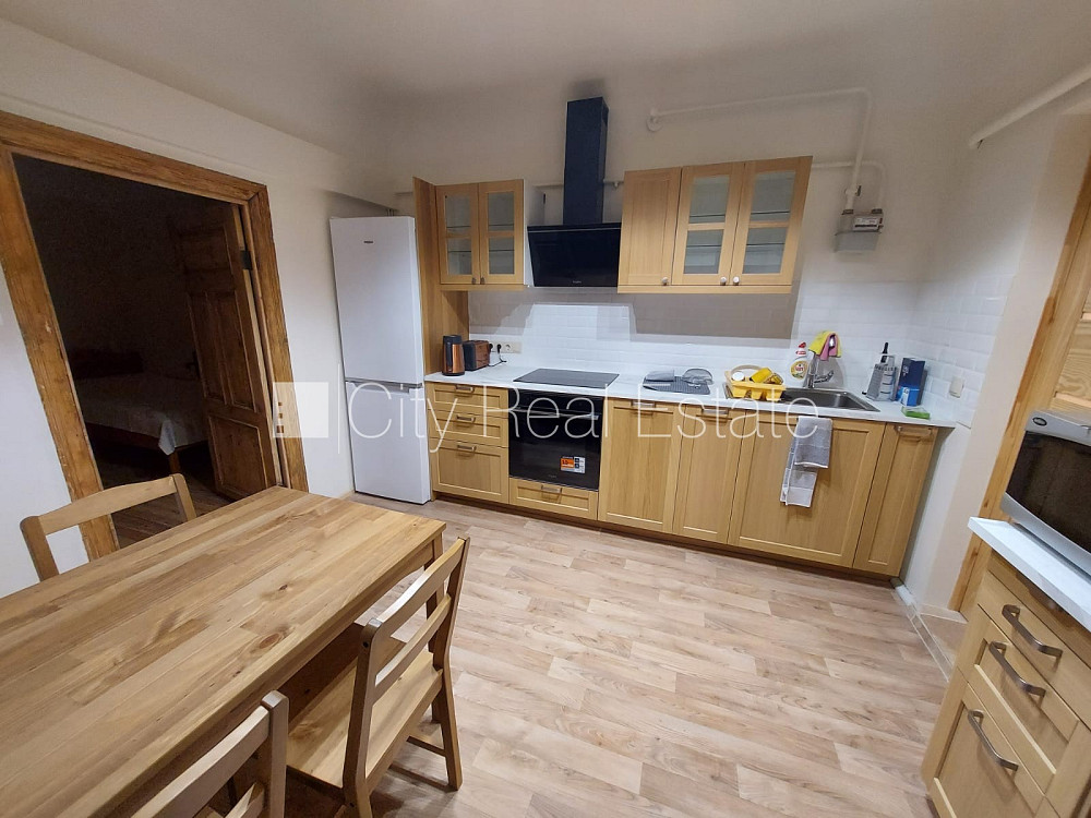 Pagalma māja, slēgts pagalms, vieta automašīnai, istabas izolētas 3 gab., viena istaba caurstaigājama, virtuve, gāzes apkure, koka stikla pakešu logi, jauna santehnika, priedes koka grīdas segums, dušas kabīne, iebūvēta virtuves iekārta, dīvāns, gulta , divguļamā gulta, virtuves galds, virtuves krēsli, skapis, drēbju skapis, kumode, televizors, ledusskapis, cepeškrāsns, gāzes plīts, veļas mašīna, līdz jūrai 800 m, līdz parkam 500 m, CITY REAL ESTATE ID - 489857