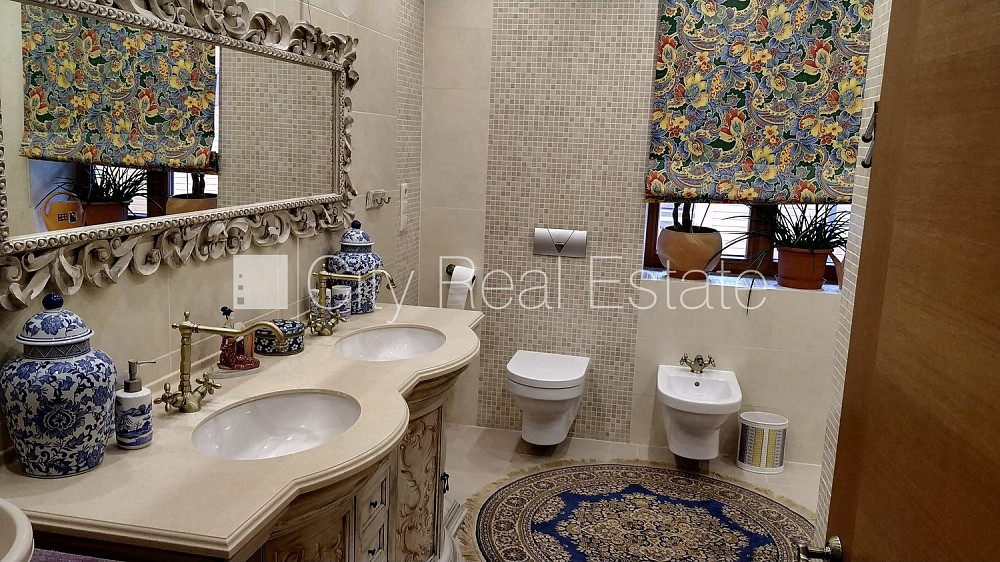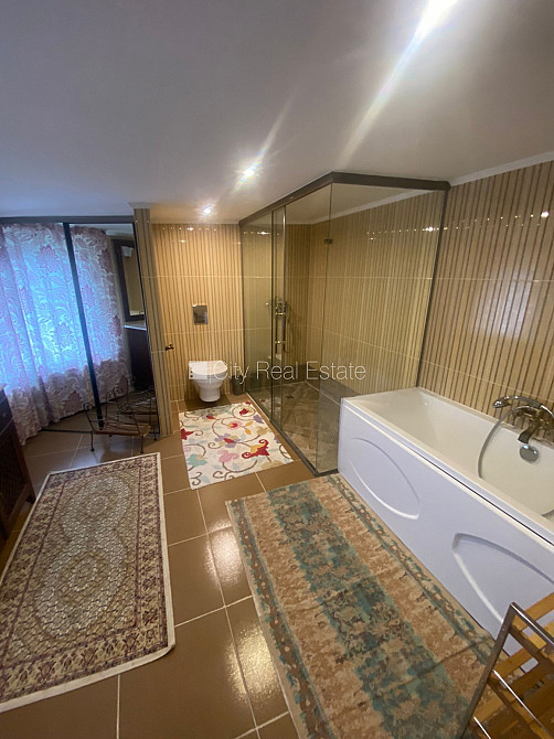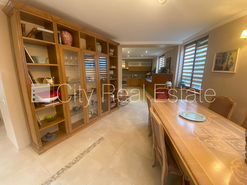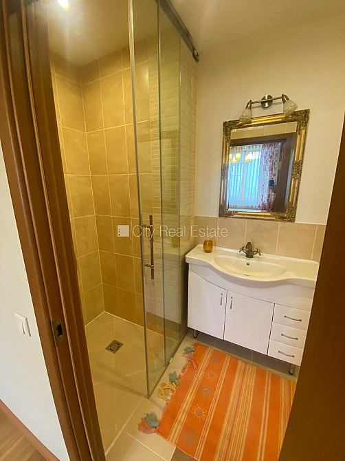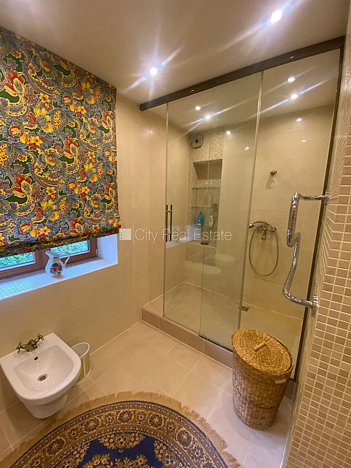 Slēgts pagalms, teritorijas iebrauktuves vārti aprīkoti ar automatizētu atvēršanās un aizvēršanās sistēmu, vieta vairākām automašīnām, terase, guļamistabu skaits 5 gab., viesistaba, virtuve, gāzes apkure, jauna santehnika, parketa grīda, trīs sanitārie mezgli, vanna, dušas kabīne, iebūvēta virtuves iekārta, iebūvēti sienas skapji, gaisa kondicionieris, televizors, ledusskapis, trauku mazgājamā mašīna, elektriskā plīts, cepeškrāsns, veļas mašīna, internets, signalizācija, līdz jūrai 100 m, bez dzīvniekiem, CITY REAL ESTATE ID - 424340