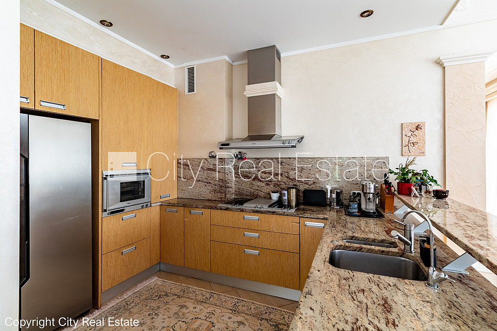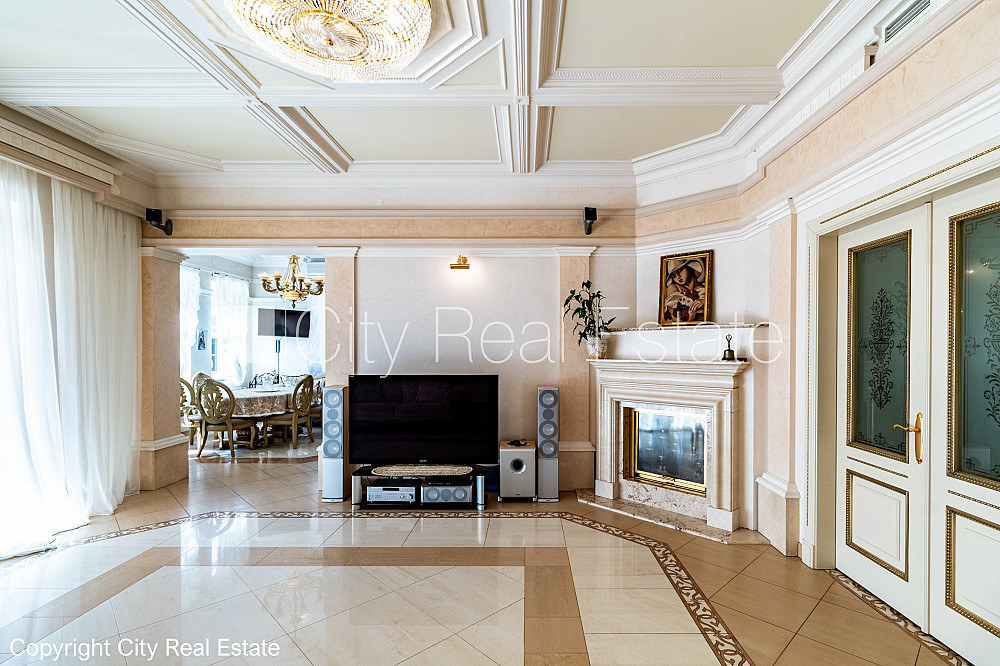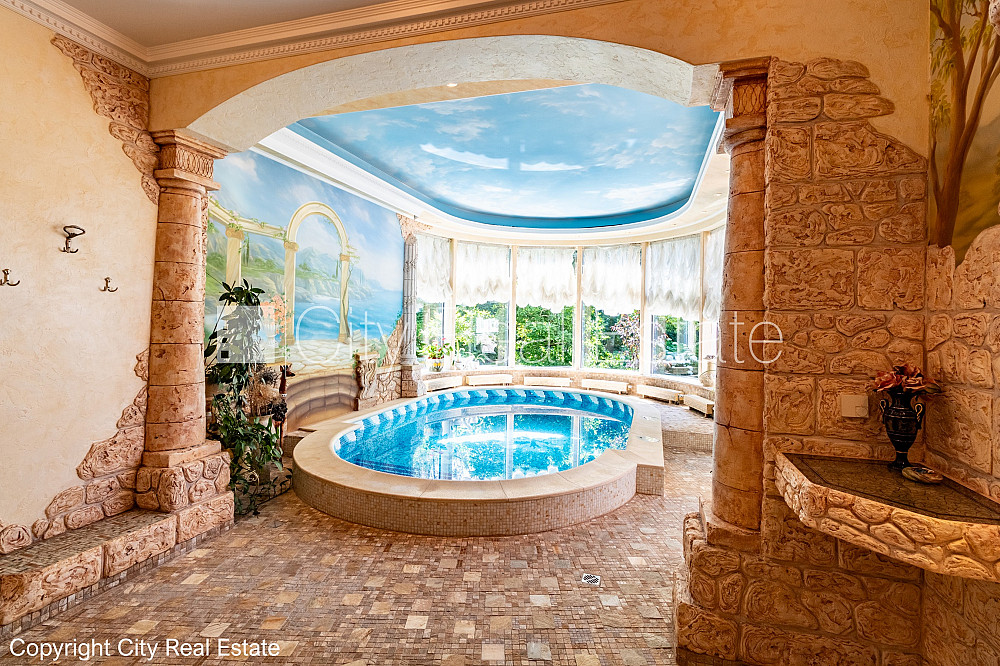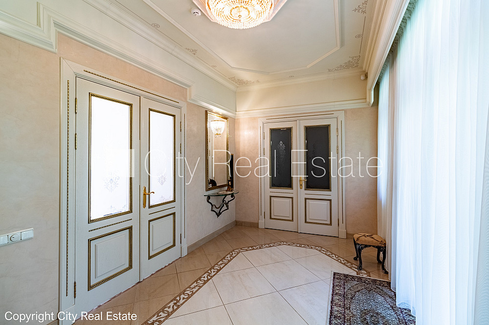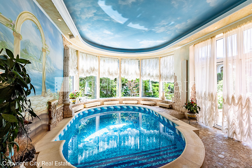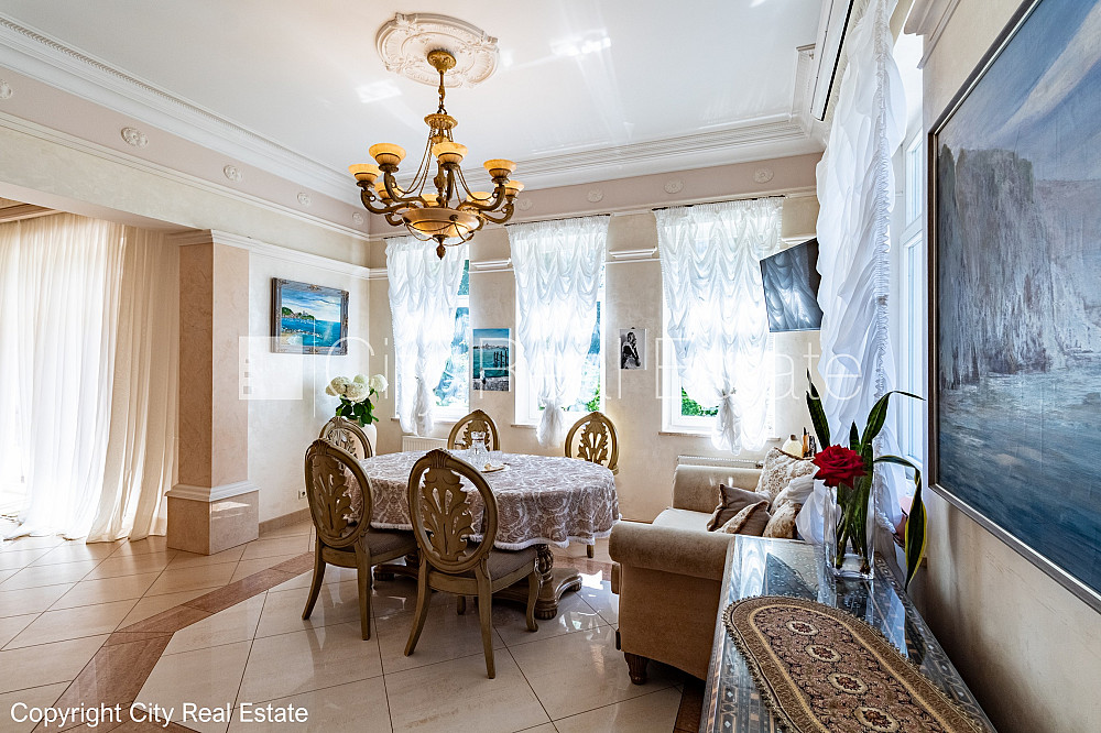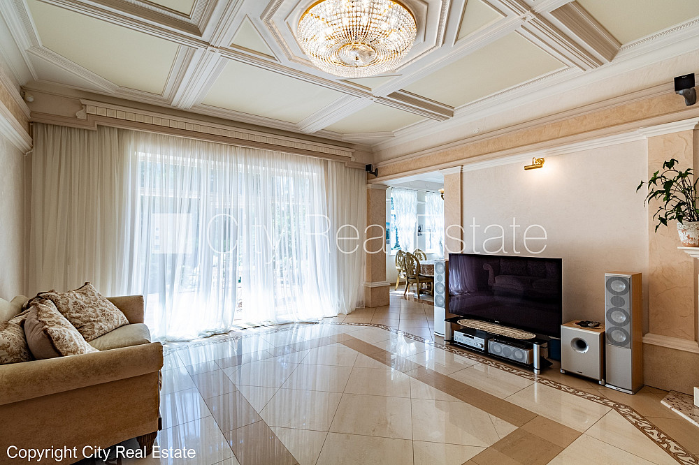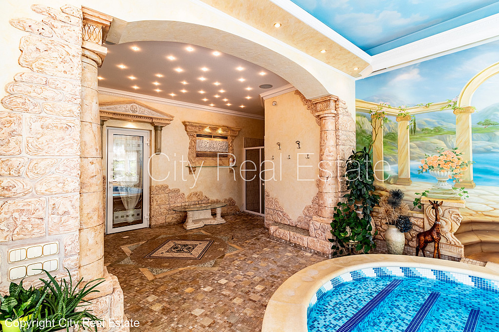 Labiekārtota apzaļumota teritorija, iežogota teritorija, vieta vairākām automašīnām, baseins, turku pirts, logi vērsti mājas abās pusēs, gaisa ventilācijas sistēma, gaisa kondicionēšanas sistēma, guļamistabu skaits 5 gab., istabas izolētas, virtuve, halle, kamīns, apsildāmas grīdas, iebūvēti gaismas ķermeņi, parketa grīda, flīžu grīdas segums, trīs sanitārie mezgli, vanna, dušas kabīne, iebūvēta virtuves iekārta, iebūvēti sienas skapji, dīvāns, gulta , galds, virtuves galds, krēsli, televizors, ledusskapis, saldētava, trauku mazgājamā mašīna, elektriskā plīts, cepeškrāsns, tvaika nosūcējs, mikroviļņu krāsns, veļas mašīna, satelīta televīzija, internets, telefona pieslēgums, signalizācija, namrunis, diennakts videonovērošana, līdz jūrai 100 m, CITY REAL ESTATE ID - 495060
