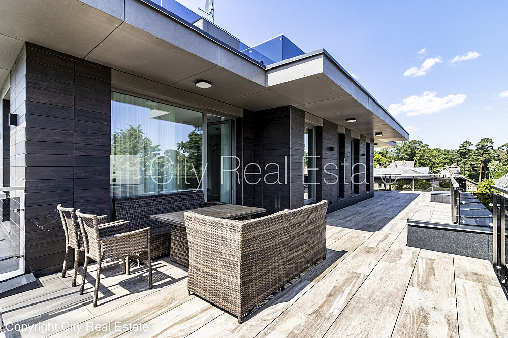 Jaunceltne, fasādes māja, labiekārtota apzaļumota teritorija, slēgta teritorija, iežogota teritorija ar metāla sētu, garāžas vārti aprīkoti ar automatizētu atvēršanās un aizvēršanās sistēmu, iespēja nomāt pazemes autostāvvietu, ieeja no ielas un pagalma, ir lifts, terase, logi vērsti uz pagalma pusi, logi vērsti mājas abās pusēs, plašs skats no loga, guļamistabu skaits 2 gab., istabas izolētas, viesistaba, virtuve, halle, radiatori ar termoregulatoriem, uzstādīti attīrīšanas filtri aukstajam ūdenim, uzstādīti aukstā ūdens patēriņa skaitītāji, uzstādīti karstā ūdens patēriņa skaitītāji, apkures skaitītāji, individuāla apkures sistēmas uzskaite, apsildāma grīda vannas istabā, lielie skatlogi, parketa grīda, flīžu grīdas segums, divi sanitārie mezgli, vanna, dušas kabīne, iebūvēta virtuves iekārta, iebūvēti sienas skapji, gaisa kondicionieris, televizors, ledusskapis, trauku mazgājamā mašīna, indukcijas plīts, cepeškrāsns, veļas mašīna, veļas žāvētājs, gludeklis, ir seifs, internets, diennakts videonovērošana, video domofons, diennakts apsardze, viedkaršu caurlaides sistēma, izīrē ar visu bildēs redzamo aprīkojumu, atbrīvots, stratēģiski izdevīga vieta, cena vasaras sezonā - 5500.00 EUR, CITY REAL ESTATE ID - 510311