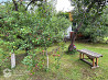 Uz zemes gabala aug dažādi augļu koki un ogu krūmi.