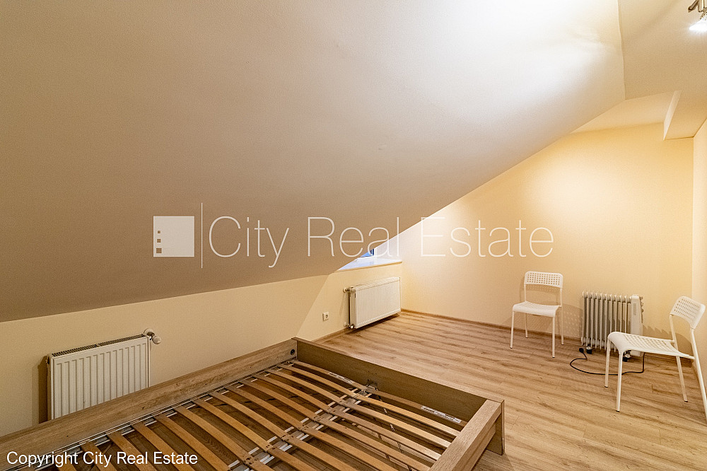 Labiekārtota apzaļumota teritorija, vieta automašīnai, mansards, istabas izolētas 2 gab., viena istaba caurstaigājama, virtuve, palīgtelpa, slīpie griesti, gāzes apkure, plastikāta stikla pakešu logi, jumta logi, krāsotas sienas, parketa grīda, sanitārais mezgls apvienots, dušas kabīne, dīvāns, gulta , divguļamā gulta, krēsli, kumode, ledusskapis, elektriskā plīts, tvaika nosūcējs, veļas mašīna, internets, telefona pieslēgums, namrunis, slēgta kāpņu telpa, atbrīvots, CITY REAL ESTATE ID - 442831
