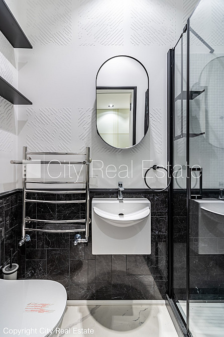 Privātmāja, dzīvokļu skaits ēkā 4 gab., labiekārtots apzaļumots pagalms, bruģēts piebraucamais ceļš, slēgts pagalms, teritorijas iebrauktuves vārti aprīkoti ar automatizētu atvēršanās un aizvēršanās sistēmu, vieta vairākām automašīnām, terase, gaisa ventilācijas sistēma, gaisa kondicionēšanas sistēma, istabas izolētas 2 gab., studio tipa, virtuve apvienota ar viesistabu, halle, palīgtelpa, gāzes apkure, apkures skaitītāji, individuāla apkures sistēmas uzskaite, pilnā apdare, apsildāmas grīdas, lielie skatlogi, koka stikla pakešu logi, parketa grīda, flīžu grīdas segums, divi sanitārie mezgli, dušas kabīne, stūra vanna, iebūvēta virtuves iekārta, ledusskapis, trauku mazgājamā mašīna, cepeškrāsns, gāzes plīts, tvaika nosūcējs, veļas mašīna, signalizācija, izīrē ar visu bildēs redzamo aprīkojumu, stratēģiski izdevīga vieta, CITY REAL ESTATE ID - 517074