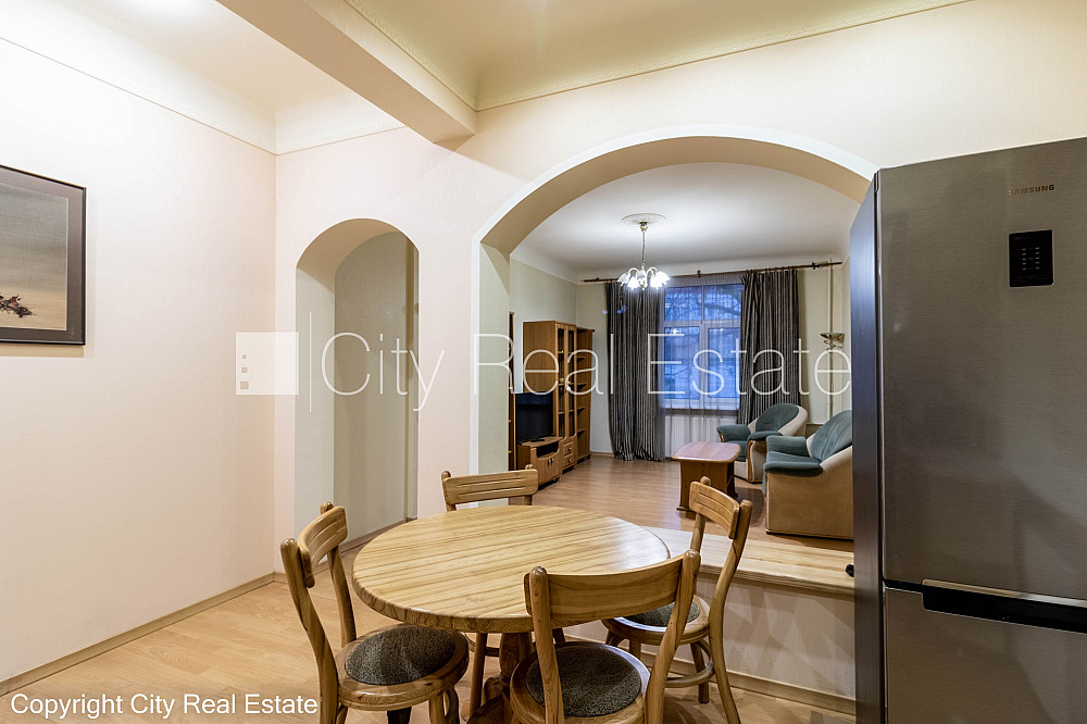 Pagalma māja, labiekārtota apzaļumota teritorija, ieeja no pagalma, guļamistabu skaits 1 gab., studio tipa, virtuve apvienota ar viesistabu, centrālā apkure, apsildāma grīda vannas istabā, plastikāta stikla pakešu logi, lamināta parketa grīda, flīžu grīdas segums, sanitārais mezgls atsevišķs, vanna, iebūvēta virtuves iekārta, dīvāns, divguļamā gulta, virtuves galds, žurnālu galdiņš, atpūtas krēsli, bāra lete, bāra krēsli, virtuves krēsli, grāmatu skapis, trīsdurvju skapis, trauku skapis, kumode, spogulis, televizors, ledusskapis, trauku mazgājamā mašīna, gāzes plīts, tvaika nosūcējs, mikroviļņu krāsns, veļas mašīna, minimālais īres termiņš 1 gads, atbrīvo janvārī, bez dzīvniekiem, izvēloties šo īpašumu, komisijas maksa par starpniecības pakalpojumiem ir vienāda ar vienu pusi (50%) no šī īpašuma viena mēneša īres maksas, CITY REAL ESTATE ID - 431011