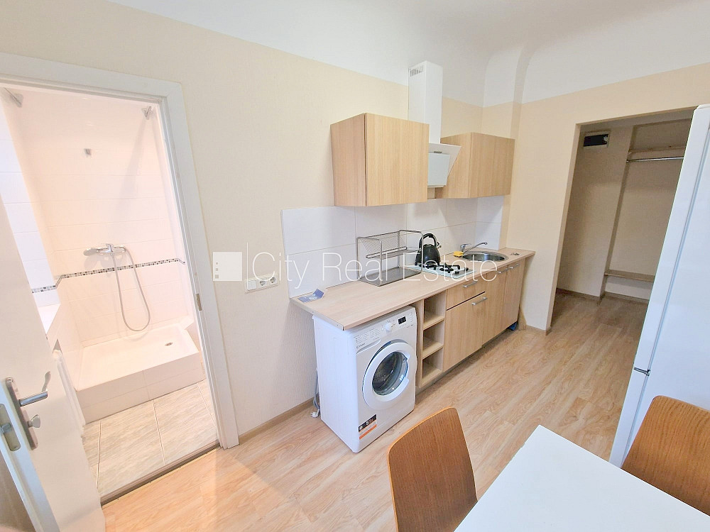 Pagalma māja, renovēta māja, slēgts pagalms, teritorijas iebrauktuves vārti aprīkoti ar automatizētu atvēršanās un aizvēršanās sistēmu, iespēja nomāt autostāvvietu, objektu apsargā fiziskā apsardze, ieeja no ielas, kāpņu telpa pēc kosmētiskā remonta, logi vērsti uz pagalma pusi, guļamistabu skaits 1 gab., viena istaba caurstaigājama, virtuve, augstie griesti, centrālā apkure, boilers karstajam ūdenim, pilnā apdare, plastikāta stikla pakešu logi, izlīmētas tapetes, krāsotas sienas, jauna santehnika, lamināta parketa grīda, flīžu grīdas segums, sanitārais mezgls apvienots, dušas kabīne, tualete, iebūvēta virtuves iekārta, iebūvēti sienas skapji, dīvāns, divguļamā gulta, virtuves galds, virtuves krēsli, ledusskapis, gāzes plīts, tvaika nosūcējs, veļas mašīna, slēgta kāpņu telpa, izīrē ar visu bildēs redzamo aprīkojumu, atbrīvots, slēdzot īres līgumu, Jums būs jāmaksā par pirmo īres mēnesi , kā arī jāiemaksā drošības depozīts viena mēneša īres maksas apmērā, izvēloties šo īpašumu, komisijas maksa par starpniecības pakalpojumiem ir vienāda ar vienu pusi (50%) no šī īpašuma viena mēneša īres maksas, CITY REAL ESTATE ID - 424525