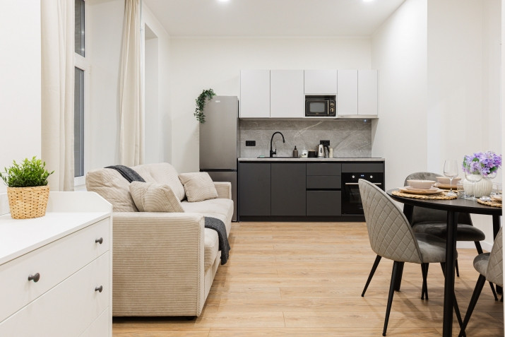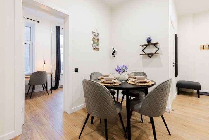 Pieejams ekskluzīvs dzīvoklis īstermiņa īrei Merķeļa ielā 8. Dzīvoklis ir pilnībā