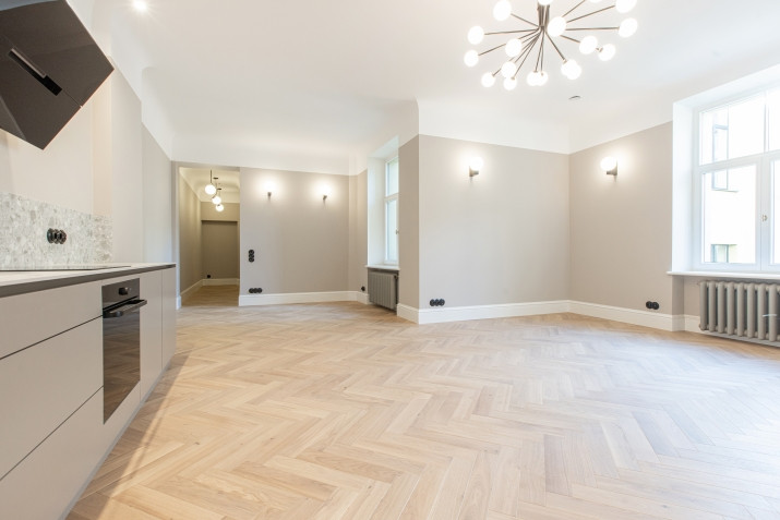 Ekskluzīvs, pilnībā atjaunots dzīvoklis pie Vērmanes dārza Dzīvoklis (4. stāvs): - Plašs koridors, atvērta tipa viesistaba ar virtuvi, guļamistaba, garderobe, vannasistaba - Skats uz renovētu, klusu iekšpagalmu - Individuāli projektēta virtuve ar iebūvētu tehniku - Veļasmašīna - Gaisa rekuperācija ar CO kontroli - Apsildāmā grīda, akmens flīzes, dizaina gaismas - Ozolkoka parkets, masīvkoka durvis - Restaurēti vēsturiskie radiatori, griestu dekori, rozetes - Jauna elektroinstalācija un santehnika - Ekoloģiska siltumizolācija, koka pakešu logi - Autonoma gāzes apkure Ēka un atrašanās vieta: + Vēsturiska ēka (1895) + 80 m līdz Vērmanes dārzam + Sabiedriskais transports, Centrālā stacija, restorāni un veikali Papildus: - Nemēbelēts; iespējams mēbelēt par papildu samaksu - Pieejams uzkopšanas serviss Nosacījumi: + Komunālie pēc skaitītājiem / platības + Līgums min. 12 mēneši + Depozīts 1 mēn. + civiltiesiskā apdrošināšana