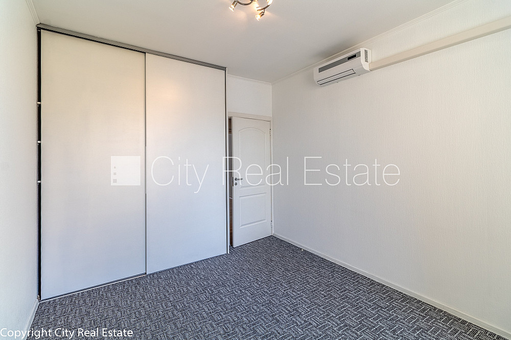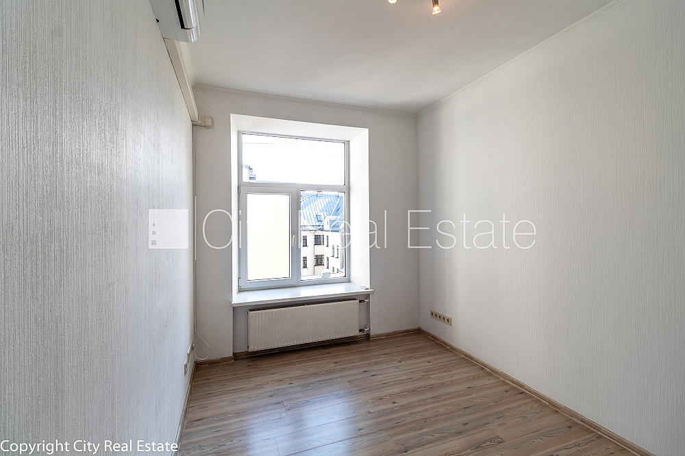 Fasādes māja, labiekārtots apzaļumots pagalms, bruģēts piebraucamais ceļš, slēgta teritorija, teritorijas iebrauktuves vārti aprīkoti ar automatizētu atvēršanās un aizvēršanās sistēmu, iespēja nomāt autostāvvietu, ieeja no ielas, ir lifts, kāpņu telpa pēc kapitālā remonta, franču balkons, logi vērsti mājas abās pusēs, plašs skats no loga, guļamistabu skaits 3 gab., istabas izolētas 4 gab., viesistaba, virtuve, augstie griesti, mainīti radiatori, radiatori ar termoregulatoriem, centrālā apkure, pilnā apdare, plastikāta stikla pakešu logi, izlīdzinātas sienas, krāsotas sienas, jauna santehnika, lamināta parketa grīda, flīžu grīdas segums, mainīta kanalizācijas sistēma, divi sanitārie mezgli, vanna, dušas kabīne, iebūvēta virtuves iekārta, iebūvēti sienas skapji, gaisa kondicionieris, ledusskapis, saldētava, trauku mazgājamā mašīna, elektriskā plīts, cepeškrāsns, veļas mašīna, optiskais internets, signalizācija, namrunis, kāpņu telpā koda atslēga, atbrīvots, iespēja izmantot kā biroja telpas, līdz parkam 150 m, stratēģiski izdevīga vieta, līdz Vecrīgai 350 m, komisijas maksa par starpniecības pakalpojumiem nav jāmaksā, CITY REAL ESTATE ID - 428828