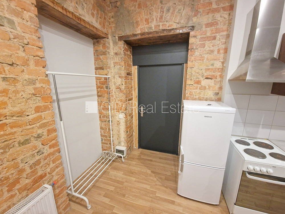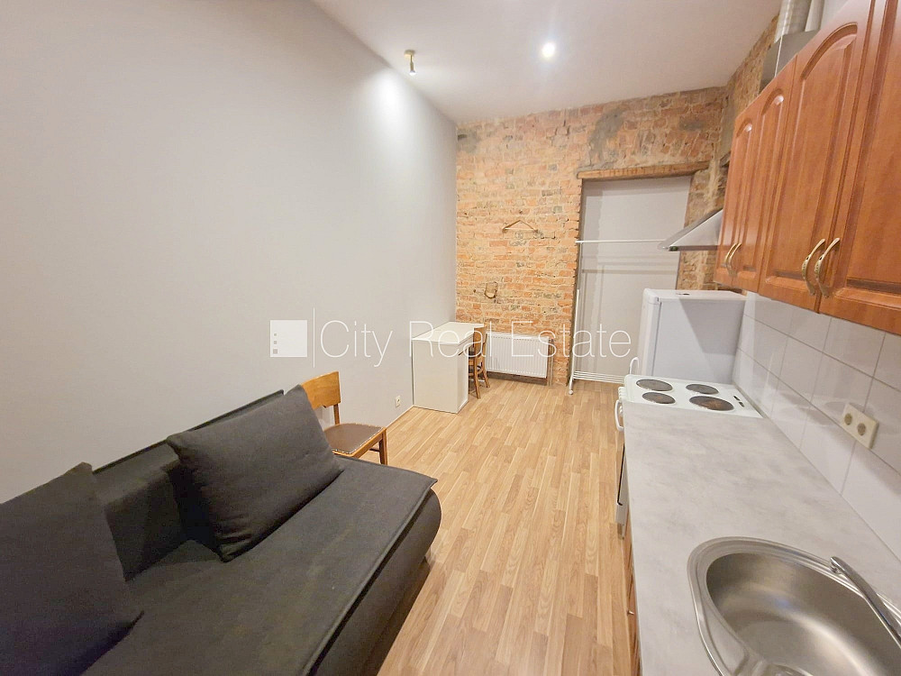 Fasādes māja, renovēta māja, labiekārtota apzaļumota teritorija, slēgts pagalms, ieeja no ielas, kāpņu telpa pēc kapitālā remonta, logi vērsti uz pagalma pusi, studio tipa, virtuve apvienota ar istabu, augstie griesti, centrālā apkure, pilnā apdare, plastikāta stikla pakešu logi, krāsotas sienas, lamināta parketa grīda, flīžu grīdas segums, sanitārais mezgls apvienots, dušas kabīne, tualete, iebūvēta virtuves iekārta, ledusskapis, elektriskā plīts, cepeškrāsns, tvaika nosūcējs, veļas mašīna, slēgta kāpņu telpa, atbrīvots, slēdzot īres līgumu, Jums būs jāmaksā par pirmo īres mēnesi , kā arī jāiemaksā drošības depozīts viena mēneša īres maksas apmērā, izvēloties šo īpašumu, komisijas maksa par starpniecības pakalpojumiem ir vienāda ar vienu pusi (50%) no šī īpašuma viena mēneša īres maksas, CITY REAL ESTATE ID - 507934