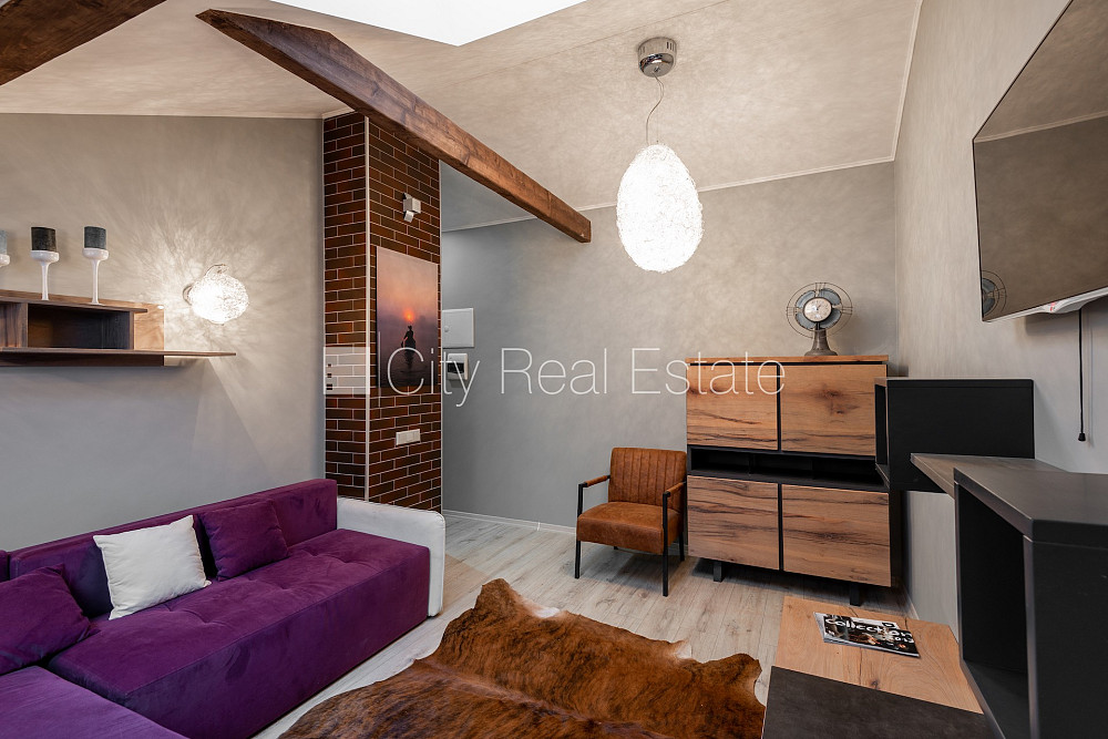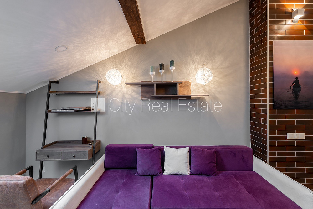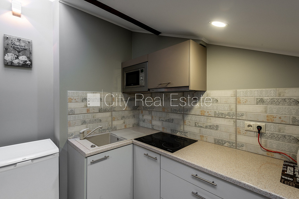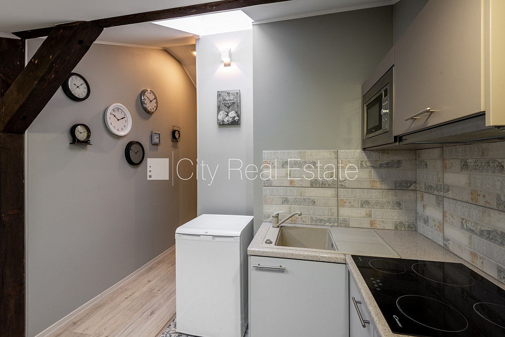 Fasādes māja, renovēta māja, labiekārtota apzaļumota teritorija, vieta automašīnai, mansards, guļamistabu skaits 1 gab., virtuve, halle, slīpie griesti, mainīti radiatori, gāzes apkure, pilnā apdare, koka stikla pakešu logi, jumta logi, krāsotas sienas, jauna santehnika, lamināta parketa grīda, flīžu grīdas segums, sanitārais mezgls apvienots, dušas kabīne, iebūvēta virtuves iekārta, iebūvēti sienas skapji, izvelkamais stūra dīvāns, rakstāmgalds, žurnālu galdiņš, televizors, ledusskapis, elektriskā plīts, tvaika nosūcējs, mikroviļņu krāsns, veļas mašīna, internets, diennakts videonovērošana, slēgta kāpņu telpa, kāpņu telpā koda atslēga, atbrīvo maijā, CITY REAL ESTATE ID - 426394