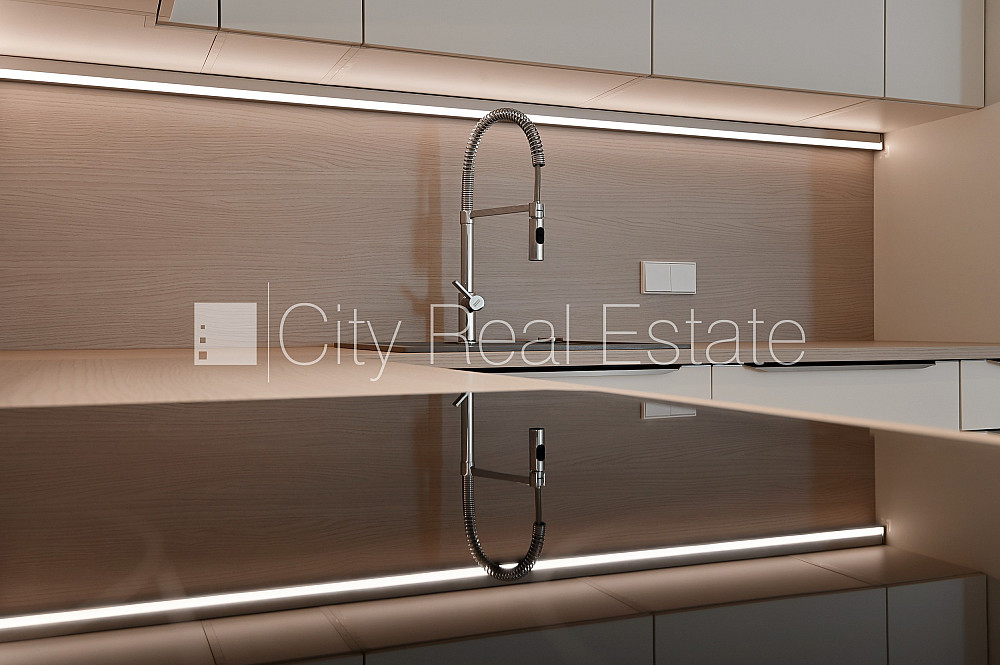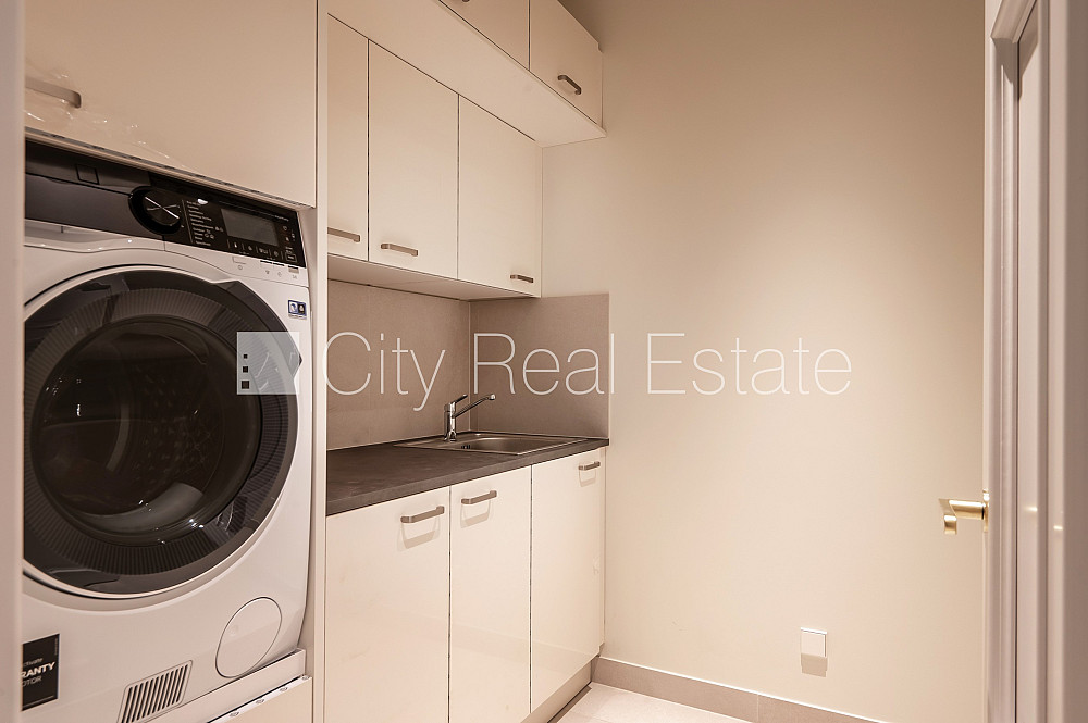 Fasādes māja, renovēta māja, labiekārtots apzaļumots pagalms, slēgts pagalms, iespēja nomāt autostāvvietu, pazemes autostāvvieta, ieeja no ielas, ieeja no pagalma, luksuss apartamenti 127,1 m2, ir lifts, kāpņu telpa pēc kapitālā remonta, balkons 6,9 m2, logi vērsti mājas abās pusēs, gaisa ventilācijas sistēma, istabas izolētas 3 gab., studio tipa, virtuve apvienota ar viesistabu 53,4 m2, sporta zāle, garderobe, halle, palīgtelpa, augstie griesti, radiatori ar termoregulatoriem, apkures skaitītāji, individuāla apkures sistēmas uzskaite, uzstādīti saules paneļi, pilnā apdare, apsildāma grīda vannas istabā, koka stikla pakešu logi, jauna santehnika, parketa grīda, flīžu grīdas segums, divi sanitārie mezgli, vanna, dušas kabīne, iebūvēti sienas skapji, gaisa kondicionieris, ledusskapis, trauku mazgājamā mašīna, indukcijas plīts, cepeškrāsns, tvaika nosūcējs, veļas mašīna, diennakts videonovērošana, video domofons, kāpņu telpā koda atslēga, atbrīvots, stratēģiski izdevīga vieta, izvēloties šo īpašumu, komisijas maksa par starpniecības pakalpojumiem ir vienāda ar vienu pusi (50%) no šī īpašuma viena mēneša īres maksas, CITY REAL ESTATE ID - 517369