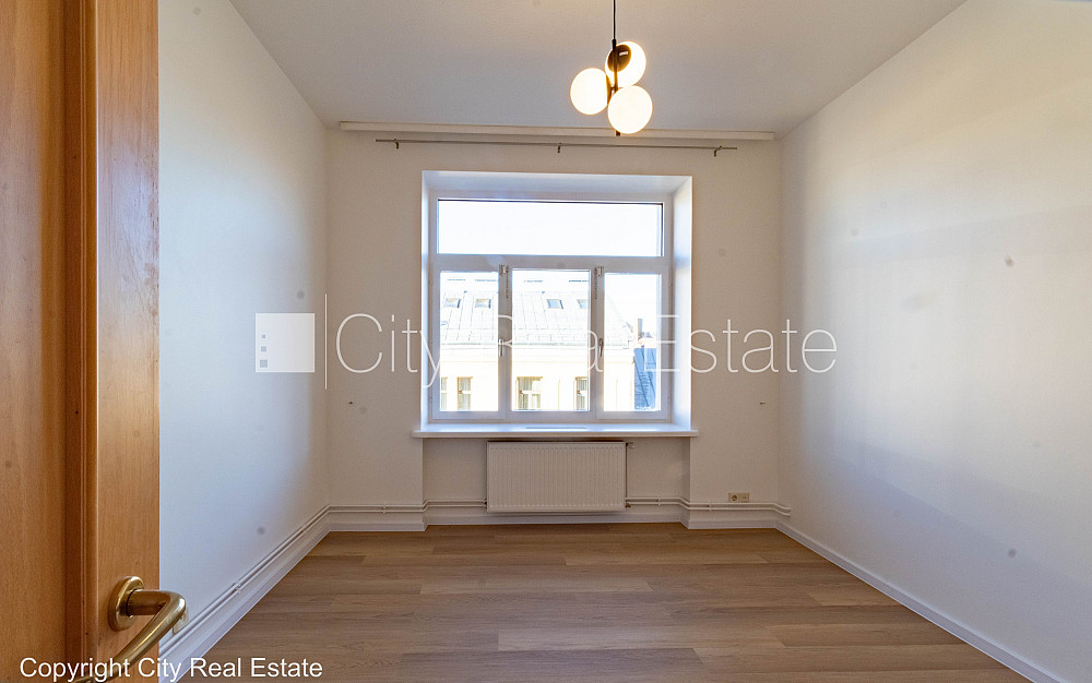 Fasādes māja, renovēta māja, viena kvadrātmetra apsaimniekošanas maksa mēnesī 0,93 EUR, labiekārtota apzaļumota teritorija, bruģēts piebraucamais ceļš, ieeja no ielas, ir lifts, kāpņu telpa pēc kapitālā remonta, balkons 11 m2, logi vērsti mājas abās pusēs, plašs skats no loga, guļamistabu skaits 4 gab., viesistaba, virtuve, garderobe, halle, augstie griesti, mainīti radiatori, gāzes apkure, automatizēta apkures sistēma, apkures skaitītāji, individuāla apkures sistēmas uzskaite, pilnā apdare, koka stikla pakešu logi, jauna santehnika, parketa grīda, flīžu grīdas segums, divi sanitārie mezgli, vanna, dušas kabīne, iebūvēta virtuves iekārta, iebūvēti sienas skapji, drēbju skapis, ledusskapis, trauku mazgājamā mašīna, elektriskā plīts, cepeškrāsns, mikroviļņu krāsns, veļas mašīna, optiskais internets, signalizācija, diennakts apsardze, kāpņu telpā koda atslēga, uz 1 gadu, ar iespēju pagarināt līgumu, atbrīvots, līdz ostai 500 m, līdz parkam 50 m, stratēģiski izdevīga vieta, līdz Vecrīgai 500 m, slēdzot īres līgumu, Jums būs jāmaksā par pirmo īres mēnesi , kā arī jāiemaksā drošības depozīts viena mēneša īres maksas apmērā, par cenu iespējams vienoties, CITY REAL ESTATE ID - 425131