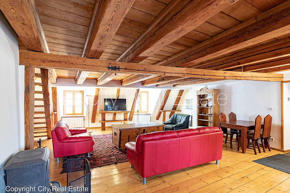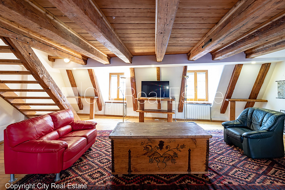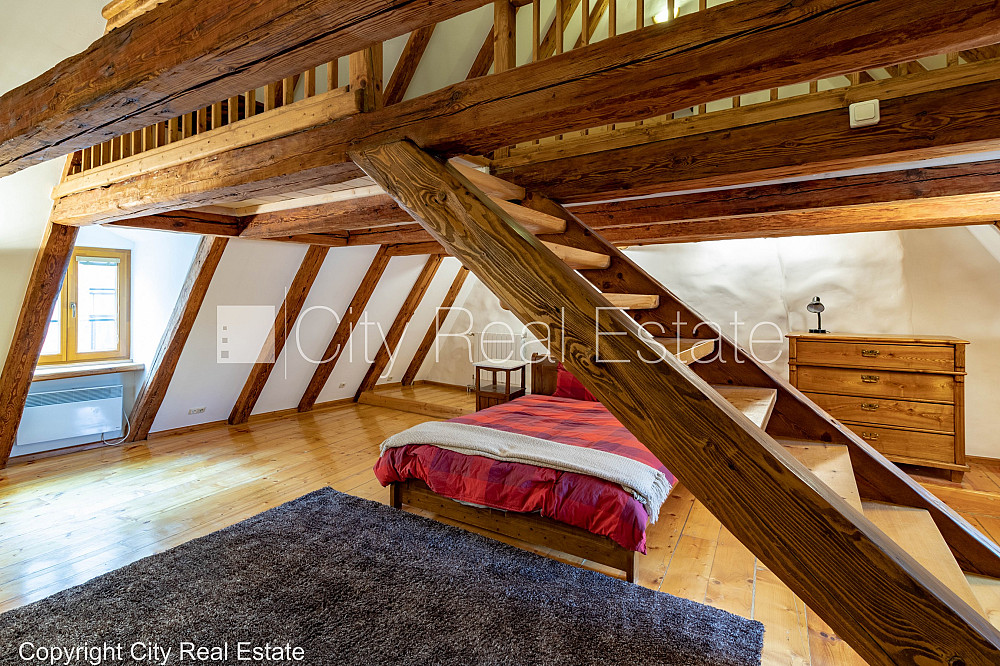 Fasādes māja, renovēta māja, mainīts Jumta segums, bruģēts piebraucamais ceļš, ieeja no ielas, kāpņu telpa pēc kapitālā remonta, logi vērsti mājas abās pusēs, plašs skats no loga, trīsstāvīgs, studio tipa, virtuve apvienota ar viesistabu, jauna ūdens cauruļu sistēma, mainīti radiatori, radiatori ar termoregulatoriem, centrālā apkure, divos līmeņos, pilnā apdare, koka stikla pakešu logi, jauna santehnika, ozola koka grīdas segums, jauna elektroinstalācija, mainīta kanalizācijas sistēma, sanitārais mezgls apvienots, vanna, antikvāras mēbeles, restaurētas mēbeles, dīvāns, divguļamā gulta, galds, krēsli, atpūtas krēsli, televizors, ledusskapis, saldētava, trauku mazgājamā mašīna, elektriskā plīts, cepeškrāsns, veļas mašīna, optiskais internets, signalizācija, kāpņu telpā koda atslēga, atbrīvots, stratēģiski izdevīga vieta, bez dzīvniekiem, slēdzot īres līgumu, Jums būs jāmaksā par pirmo īres mēnesi , kā arī jāiemaksā drošības depozīts viena mēneša īres maksas apmērā, komisijas maksa par starpniecības pakalpojumiem nav jāmaksā, CITY REAL ESTATE ID - 427158