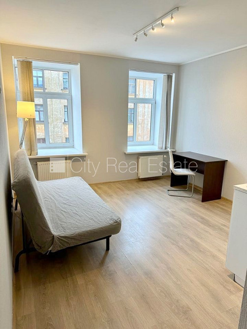 Fasādes māja, renovēta māja, ieeja no ielas un pagalma, kāpņu telpa pēc kosmētiskā remonta, logi vērsti uz ielas pusi, studio tipa, virtuve apvienota ar istabu, augstie griesti, centrālā apkure, pilnā apdare, krāsotas sienas, jauna santehnika, lamināta parketa grīda, flīžu grīdas segums, sanitārais mezgls apvienots, dušas kabīne, tualete, iebūvēta virtuves iekārta, dīvāns, virtuves galds, krēsli, skapis, ledusskapis, elektriskā plīts, cepeškrāsns, tvaika nosūcējs, veļas mašīna, slēgta kāpņu telpa, izīrē ar visu bildēs redzamo aprīkojumu, uz 1 gadu, ar iespēju pagarināt līgumu, atbrīvots, slēdzot īres līgumu, Jums būs jāmaksā par pirmo īres mēnesi , kā arī jāiemaksā drošības depozīts viena mēneša īres maksas apmērā, izvēloties šo īpašumu, komisijas maksa par starpniecības pakalpojumiem ir vienāda ar vienu pusi (50%) no šī īpašuma viena mēneša īres maksas, CITY REAL ESTATE ID - 514282