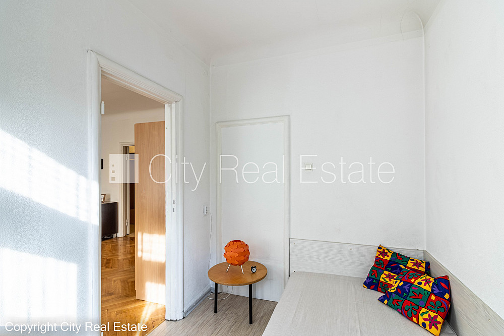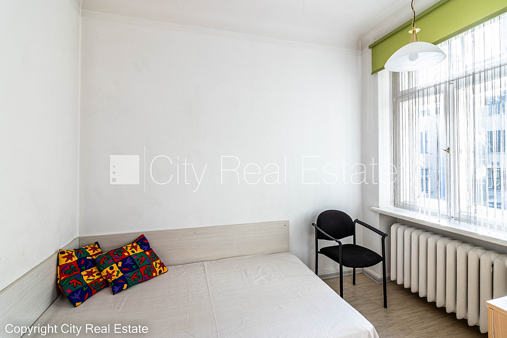 Fasādes māja, renovēta māja, ieeja no ielas, kāpņu telpa pēc kosmētiskā remonta, logi vērsti uz pagalma pusi, viena istaba izolēta, viena istaba caurstaigājama, virtuve, augstie griesti, centrālā apkure, restaurēti, atjaunoti koka logi, izlīmētas tapetes, krāsotas sienas, lamināta parketa grīda, parketa grīda, flīžu grīdas segums, sanitārais mezgls atsevišķs, dušas kabīne, iebūvēta virtuves iekārta, dīvāns, gulta , virtuves galds, žurnālu galdiņš, virtuves krēsli, skapis, bufete, ledusskapis, gāzes plīts, tvaika nosūcējs, veļas mašīna, slēgta kāpņu telpa, izīrē ar visu bildēs redzamo aprīkojumu, atbrīvots, slēdzot īres līgumu, Jums būs jāmaksā par pirmo īres mēnesi , kā arī jāiemaksā drošības depozīts viena mēneša īres maksas apmērā, CITY REAL ESTATE ID - 430879