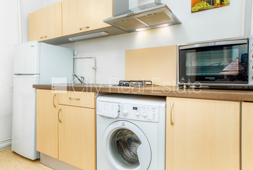 Fasādes māja, renovēta māja, ieeja no ielas, kāpņu telpa pēc kosmētiskā remonta, logi vērsti uz pagalma pusi, viena istaba izolēta, viena istaba caurstaigājama, virtuve, augstie griesti, centrālā apkure, restaurēti, atjaunoti koka logi, izlīmētas tapetes, krāsotas sienas, lamināta parketa grīda, parketa grīda, flīžu grīdas segums, sanitārais mezgls atsevišķs, dušas kabīne, iebūvēta virtuves iekārta, dīvāns, gulta , virtuves galds, žurnālu galdiņš, virtuves krēsli, skapis, bufete, ledusskapis, gāzes plīts, tvaika nosūcējs, veļas mašīna, slēgta kāpņu telpa, izīrē ar visu bildēs redzamo aprīkojumu, atbrīvots, slēdzot īres līgumu, Jums būs jāmaksā par pirmo īres mēnesi , kā arī jāiemaksā drošības depozīts viena mēneša īres maksas apmērā, CITY REAL ESTATE ID - 430879