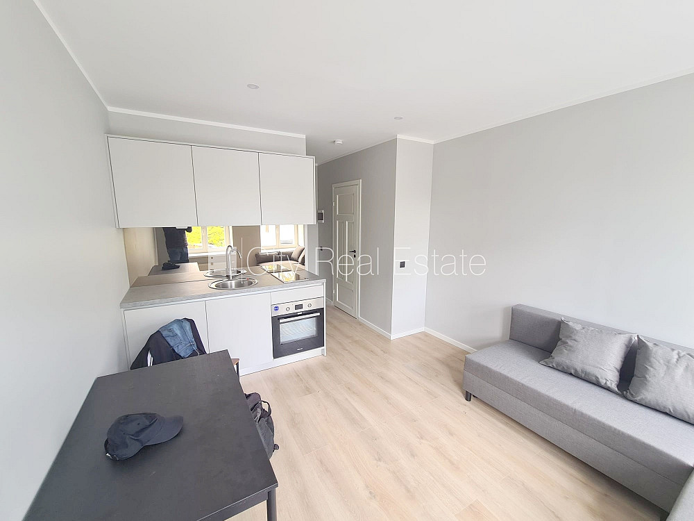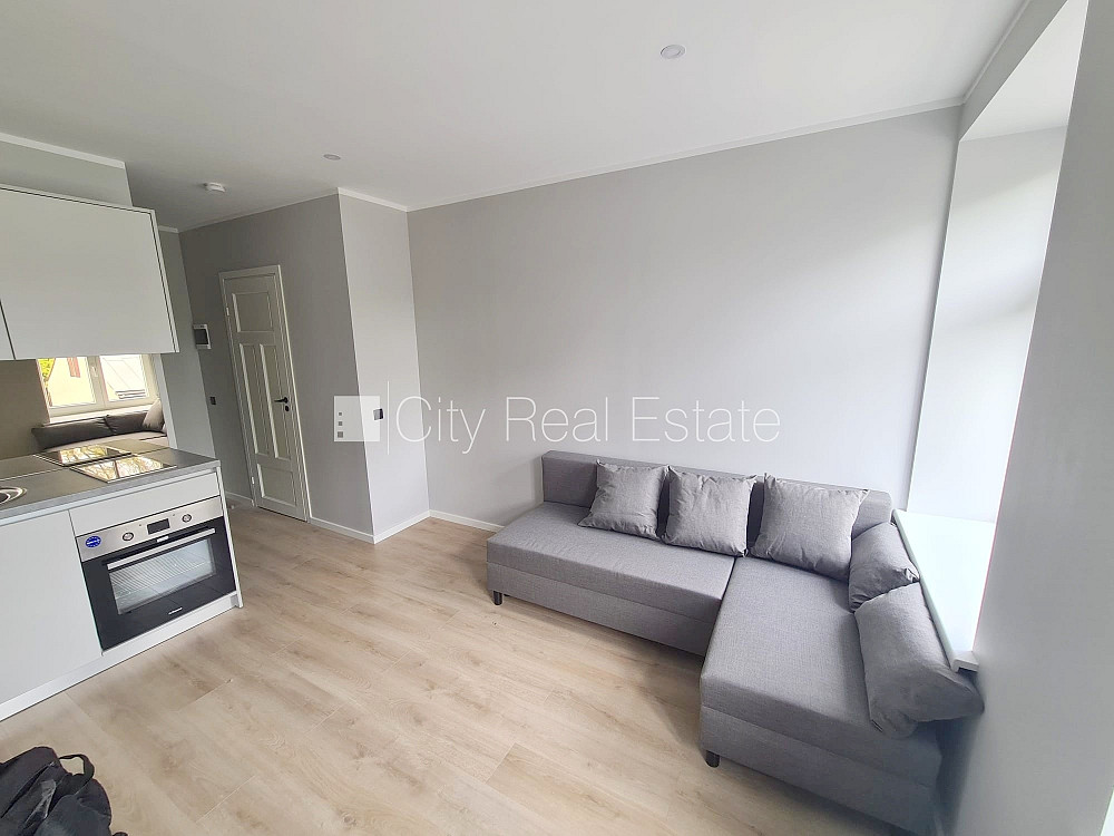 Fasādes māja, renovēta māja, ieeja no ielas, kāpņu telpa pēc kapitālā remonta, logi vērsti uz ielas pusi, studio tipa, virtuve apvienota ar istabu, centrālā apkure, pilnā apdare, plastikāta stikla pakešu logi, krāsotas sienas, jauna santehnika, lamināta parketa grīda, flīžu grīdas segums, sanitārais mezgls apvienots, dušas kabīne, tualete, iebūvēta virtuves iekārta, izvelkamais stūra dīvāns, virtuves galds, krēsli, skapis, ledusskapis, elektriskā plīts, cepeškrāsns, tvaika nosūcējs, veļas mašīna, slēgta kāpņu telpa, izīrē ar visu bildēs redzamo aprīkojumu, uz 1 gadu, ar iespēju pagarināt līgumu, atbrīvots, slēdzot īres līgumu, Jums būs jāmaksā par pirmo īres mēnesi , kā arī jāiemaksā drošības depozīts viena mēneša īres maksas apmērā, izvēloties šo īpašumu, komisijas maksa par starpniecības pakalpojumiem ir vienāda ar vienu pusi (50%) no šī īpašuma viena mēneša īres maksas, CITY REAL ESTATE ID - 513243