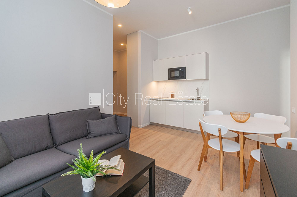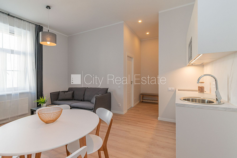 Fasādes māja, renovēta māja, ieeja no ielas, ir lifts, istabas izolētas 2 gab., studio tipa, virtuve apvienota ar istabu, centrālā apkure, pilnā apdare, plastikāta stikla pakešu logi, krāsotas sienas, parketa grīda, flīžu grīdas segums, sanitārais mezgls apvienots, dušas kabīne, iebūvēta virtuves iekārta, dīvāns, divguļamā gulta, galds, krēsli, skapis, trauku skapis, kumode, spogulis, ledusskapis, elektriskā plīts, tvaika nosūcējs, mikroviļņu krāsns, veļas mašīna, optiskais internets, diennakts videonovērošana, kāpņu telpā koda atslēga, izvēloties šo īpašumu, komisijas maksa par starpniecības pakalpojumiem ir vienāda ar vienu pusi (50%) no šī īpašuma viena mēneša īres maksas, CITY REAL ESTATE ID - 517991