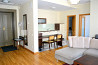 Fasādes māja, renovēta māja, ieeja no ielas, ir lifts, kāpņu telpa pēc kapitālā remonta, logi vērsti uz ielas pusi, plašs skats no loga, guļamistabu skaits 1 gab., studio tipa, virtuve apvienota ar viesistabu, garderobe, augstie griesti, centrālā apkure, apsildāma grīda tualetē, koka stikla pakešu logi, jauna santehnika, iebūvēti gaismas ķermeņi, parketa grīda, sanitārais mezgls apvienots, vanna, tualete, iebūvēta virtuves iekārta, iebūvēti sienas skapji, divguļamā gulta, virtuves galds, atpūtas krēsli, virtuves krēsli, ledusskapis, elektriskā plīts, tvaika nosūcējs, veļas mašīna, internets, kāpņu telpā koda atslēga, atbrīvots, stratēģiski izdevīga vieta, slēdzot īres līgumu, Jums būs jāmaksā par pirmo īres mēnesi , kā arī jāiemaksā drošības depozīts, izvēloties šo īpašumu, komisijas maksa par starpniecības pakalpojumiem ir vienāda ar vienu pusi (50%) no šī īpašuma viena mēneša īres maksas, CITY REAL ESTATE ID - 424501