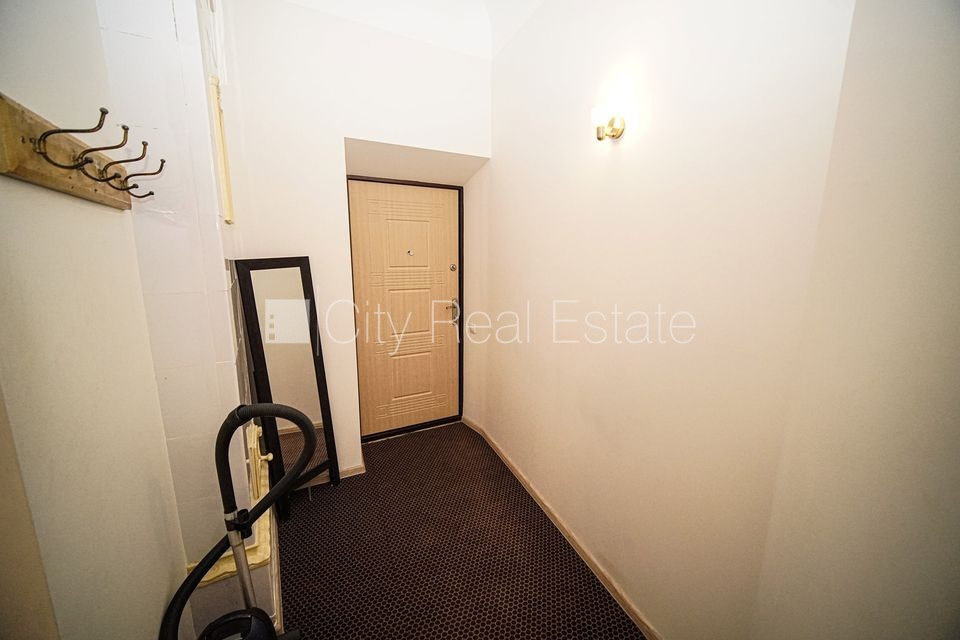 Fasādes māja, renovēta māja, ieeja no ielas, ir lifts, kāpņu telpa pēc kosmētiskā remonta, logi vērsti uz ielas pusi, guļamistabu skaits 1 gab., studio tipa, virtuve apvienota ar istabu, augstie griesti, centrālā apkure, pilnā apdare, plastikāta stikla pakešu logi, krāsotas sienas, jauna santehnika, lamināta parketa grīda, flīžu grīdas segums, sanitārais mezgls apvienots, dušas kabīne, tualete, iebūvēta virtuves iekārta, stūra dīvāns, gulta , skapis, televizors, ledusskapis, elektriskā plīts, cepeškrāsns, tvaika nosūcējs, veļas mašīna, slēgta kāpņu telpa, izīrē ar visu bildēs redzamo aprīkojumu, atbrīvots, slēdzot īres līgumu, Jums būs jāmaksā par pirmo īres mēnesi , kā arī jāiemaksā drošības depozīts viena mēneša īres maksas apmērā, izvēloties šo īpašumu, komisijas maksa par starpniecības pakalpojumiem ir vienāda ar vienu pusi (50%) no šī īpašuma viena mēneša īres maksas, CITY REAL ESTATE ID - 509706