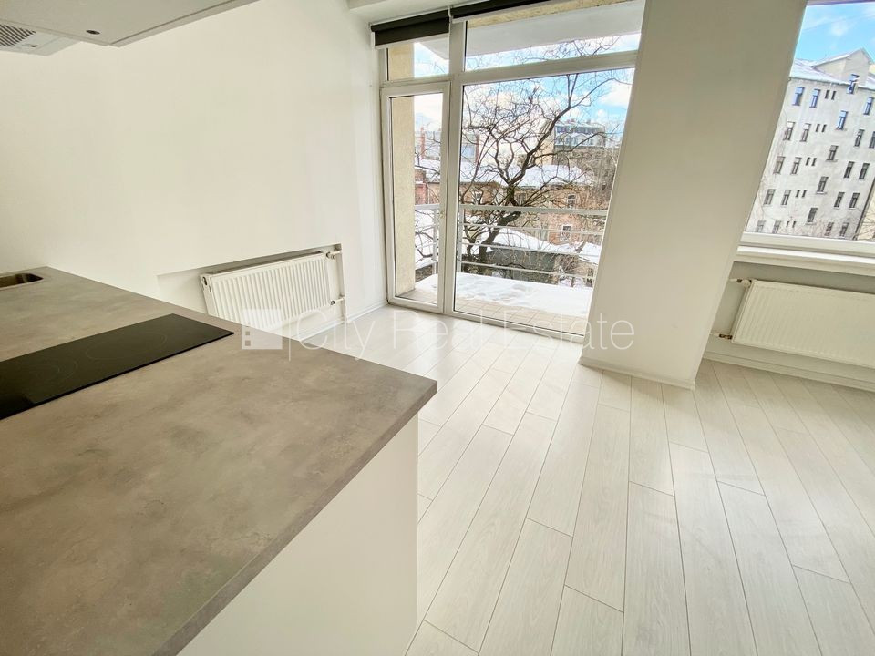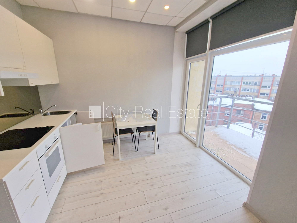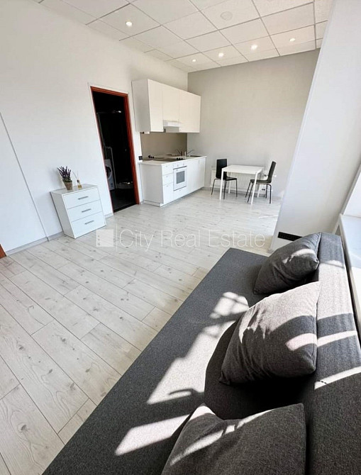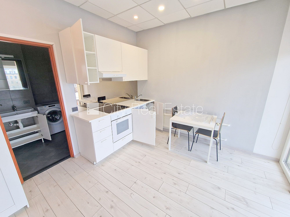 Fasādes māja, renovēta māja, ieeja no ielas, ir lifts, kāpņu telpa pēc kapitālā remonta, balkons, logi vērsti uz pagalma pusi, studio tipa, virtuve apvienota ar istabu, augstie griesti, centrālā apkure, pilnā apdare, lielie skatlogi, krāsotas sienas, jauna santehnika, lamināta parketa grīda, flīžu grīdas segums, sanitārais mezgls apvienots, dušas kabīne, tualete, iebūvēta virtuves iekārta, izvelkamais stūra dīvāns, virtuves galds, krēsli, skapis, ledusskapis, elektriskā plīts, cepeškrāsns, tvaika nosūcējs, veļas mašīna, slēgta kāpņu telpa, izīrē ar visu bildēs redzamo aprīkojumu, atbrīvots, slēdzot īres līgumu, Jums būs jāmaksā par pirmo īres mēnesi , kā arī jāiemaksā drošības depozīts viena mēneša īres maksas apmērā, izvēloties šo īpašumu, komisijas maksa par starpniecības pakalpojumiem ir vienāda ar vienu pusi (50%) no šī īpašuma viena mēneša īres maksas, CITY REAL ESTATE ID - 513632