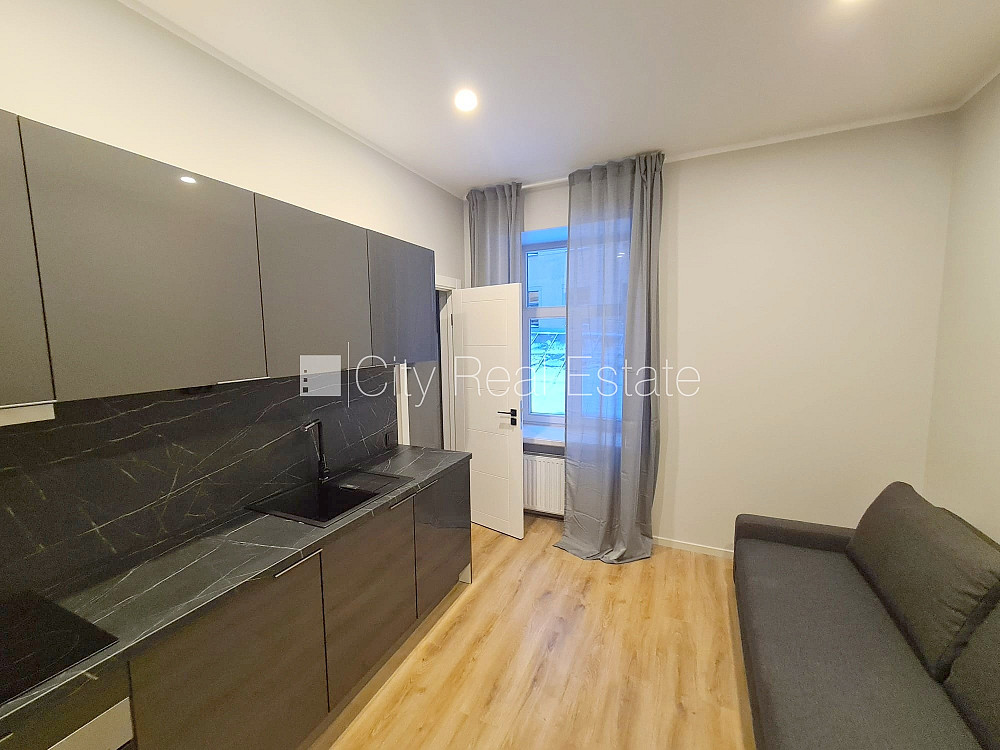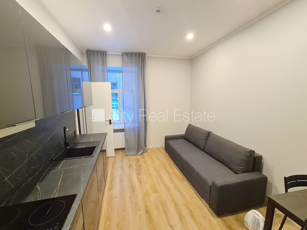 Fasādes māja, renovēta māja, slēgta teritorija, ieeja no ielas un pagalma, ir lifts, kāpņu telpa pēc kapitālā remonta, logi vērsti uz ielas pusi, studio tipa, virtuve apvienota ar istabu, augstie griesti, centrālā apkure, pilnā apdare, plastikāta stikla pakešu logi, krāsotas sienas, jauna santehnika, lamināta parketa grīda, flīžu grīdas segums, sanitārais mezgls apvienots, dušas kabīne, tualete, iebūvēta virtuves iekārta, dīvāns, virtuves galds, krēsli, skapis, ledusskapis, elektriskā plīts, cepeškrāsns, tvaika nosūcējs, veļas mašīna, slēgta kāpņu telpa, izīrē ar visu bildēs redzamo aprīkojumu, atbrīvots, slēdzot īres līgumu, Jums būs jāmaksā par pirmo īres mēnesi , kā arī jāiemaksā drošības depozīts, izvēloties šo īpašumu, komisijas maksa par starpniecības pakalpojumiem ir vienāda ar vienu pusi (50%) no šī īpašuma viena mēneša īres maksas, CITY REAL ESTATE ID - 511345