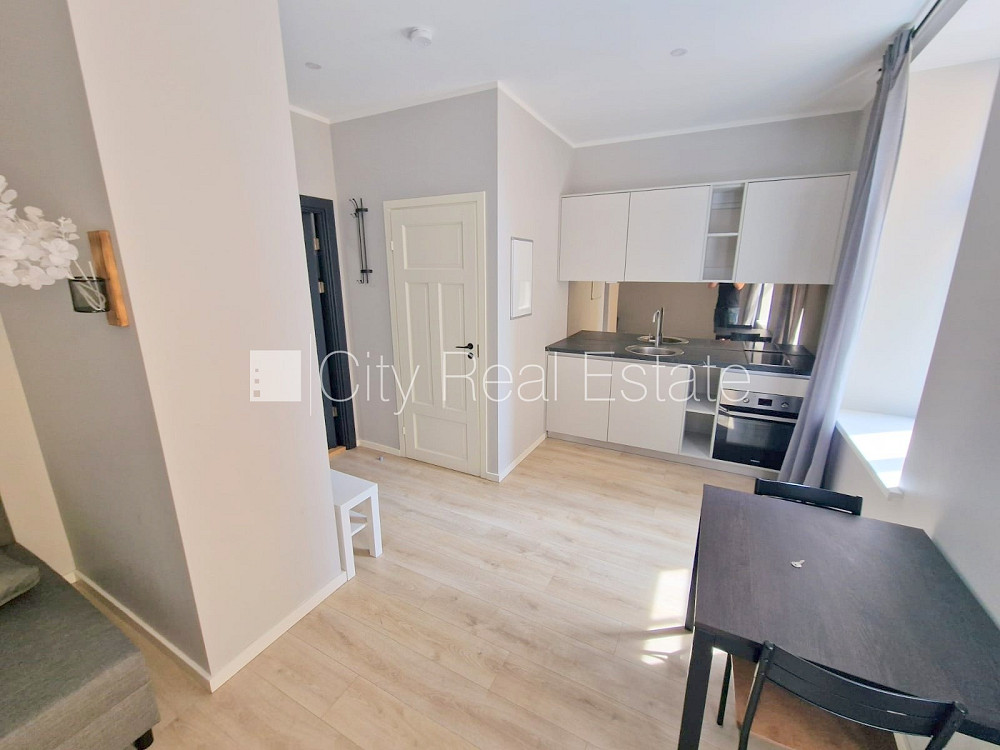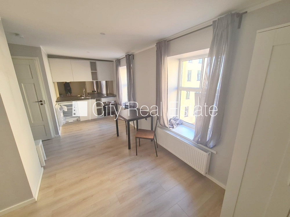 Fasādes māja, renovēta māja, slēgts pagalms, ieeja no ielas un pagalma, kāpņu telpa pēc kapitālā remonta, logi vērsti uz pagalma pusi, studio tipa, virtuve apvienota ar istabu, augstie griesti, centrālā apkure, pilnā apdare, plastikāta stikla pakešu logi, krāsotas sienas, jauna santehnika, lamināta parketa grīda, flīžu grīdas segums, sanitārais mezgls apvienots, dušas kabīne, tualete, iebūvēta virtuves iekārta, izvelkamais stūra dīvāns, virtuves galds, krēsli, skapis, ledusskapis, elektriskā plīts, cepeškrāsns, tvaika nosūcējs, veļas mašīna, diennakts videonovērošana, izīrē ar visu bildēs redzamo aprīkojumu, uz 1 gadu, uz 2 gadiem, atbrīvots, slēdzot īres līgumu, Jums būs jāmaksā par pirmo īres mēnesi , kā arī jāiemaksā drošības depozīts viena mēneša īres maksas apmērā, izvēloties šo īpašumu, komisijas maksa par starpniecības pakalpojumiem ir vienāda ar vienu pusi (50%) no šī īpašuma viena mēneša īres maksas, CITY REAL ESTATE ID - 516618