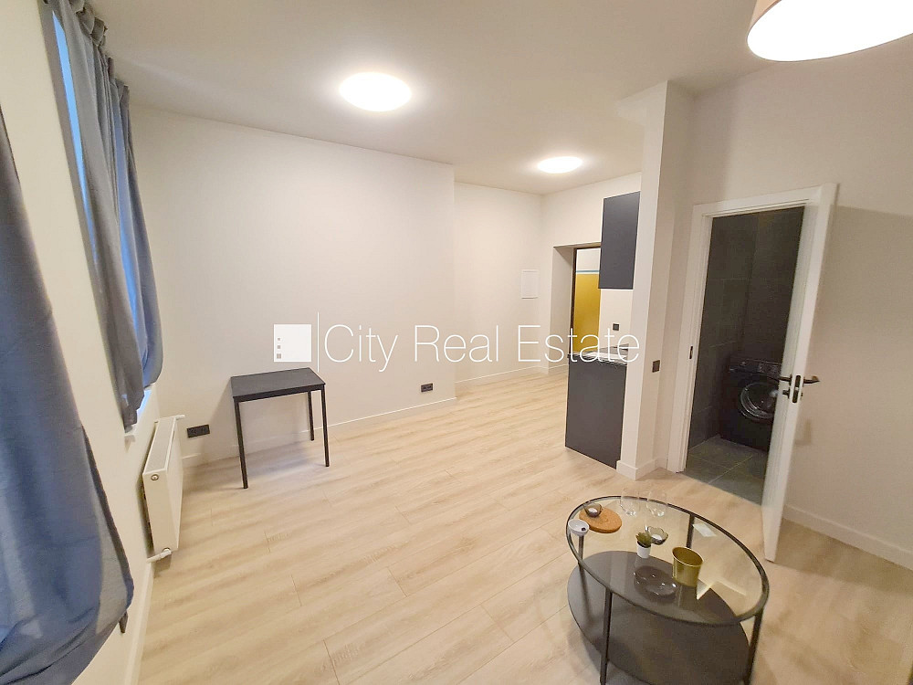 Fasādes māja, renovēta māja, slēgts pagalms, ieeja no ielas un pagalma, kāpņu telpa pēc kapitālā remonta, logi vērsti uz pagalma pusi, studio tipa, virtuve apvienota ar istabu, augstie griesti, centrālā apkure, pilnā apdare, plastikāta stikla pakešu logi, krāsotas sienas, jauna santehnika, lamināta parketa grīda, flīžu grīdas segums, sanitārais mezgls apvienots, dušas kabīne, tualete, iebūvēta virtuves iekārta, izvelkamais stūra dīvāns, virtuves galds, krēsli, skapis, ledusskapis, elektriskā plīts, cepeškrāsns, tvaika nosūcējs, veļas mašīna, slēgta kāpņu telpa, izīrē ar visu bildēs redzamo aprīkojumu, uz 1 gadu, uz 2 gadiem, ar iespēju pagarināt līgumu, atbrīvots, foto veikts remonta laikā, slēdzot īres līgumu, Jums būs jāmaksā par pirmo īres mēnesi , kā arī jāiemaksā drošības depozīts viena mēneša īres maksas apmērā, izvēloties šo īpašumu, komisijas maksa par starpniecības pakalpojumiem ir vienāda ar vienu pusi (50%) no šī īpašuma viena mēneša īres maksas, CITY REAL ESTATE ID - 515159