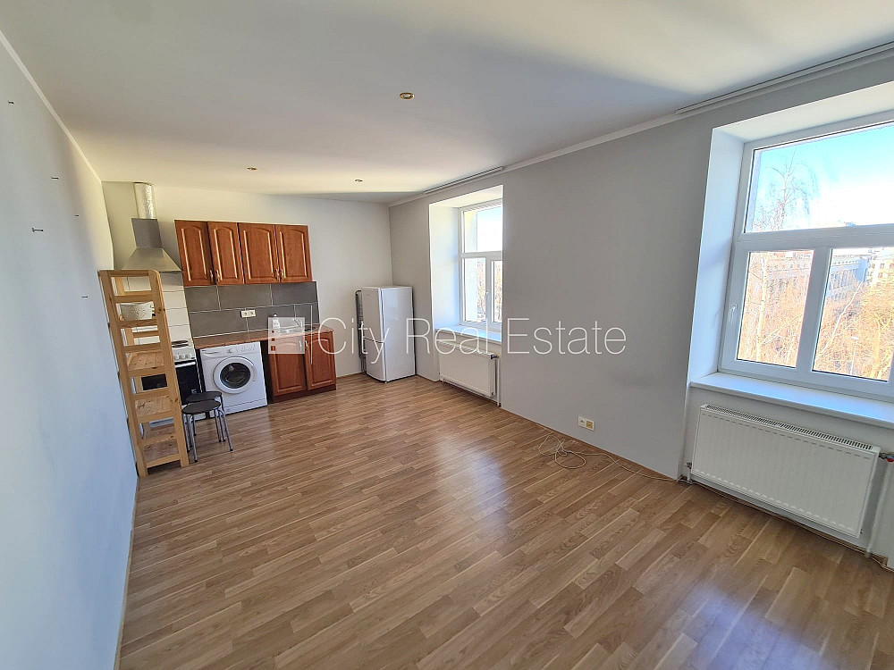 Fasādes māja, renovēta māja, slēgts pagalms, ieeja no ielas un pagalma, kāpņu telpa pēc kosmētiskā remonta, logi vērsti uz pagalma pusi, studio tipa, virtuve apvienota ar istabu, augstie griesti, centrālā apkure, pilnā apdare, plastikāta stikla pakešu logi, krāsotas sienas, jauna santehnika, lamināta parketa grīda, flīžu grīdas segums, sanitārais mezgls apvienots, dušas kabīne, tualete, iebūvēta virtuves iekārta, ledusskapis, elektriskā plīts, cepeškrāsns, tvaika nosūcējs, veļas mašīna, slēgta kāpņu telpa, izīrē ar visu bildēs redzamo aprīkojumu, atbrīvots, slēdzot īres līgumu, Jums būs jāmaksā par pirmo īres mēnesi , kā arī jāiemaksā drošības depozīts viena mēneša īres maksas apmērā, izvēloties šo īpašumu, komisijas maksa par starpniecības pakalpojumiem ir vienāda ar vienu pusi (50%) no šī īpašuma viena mēneša īres maksas, CITY REAL ESTATE ID - 512521