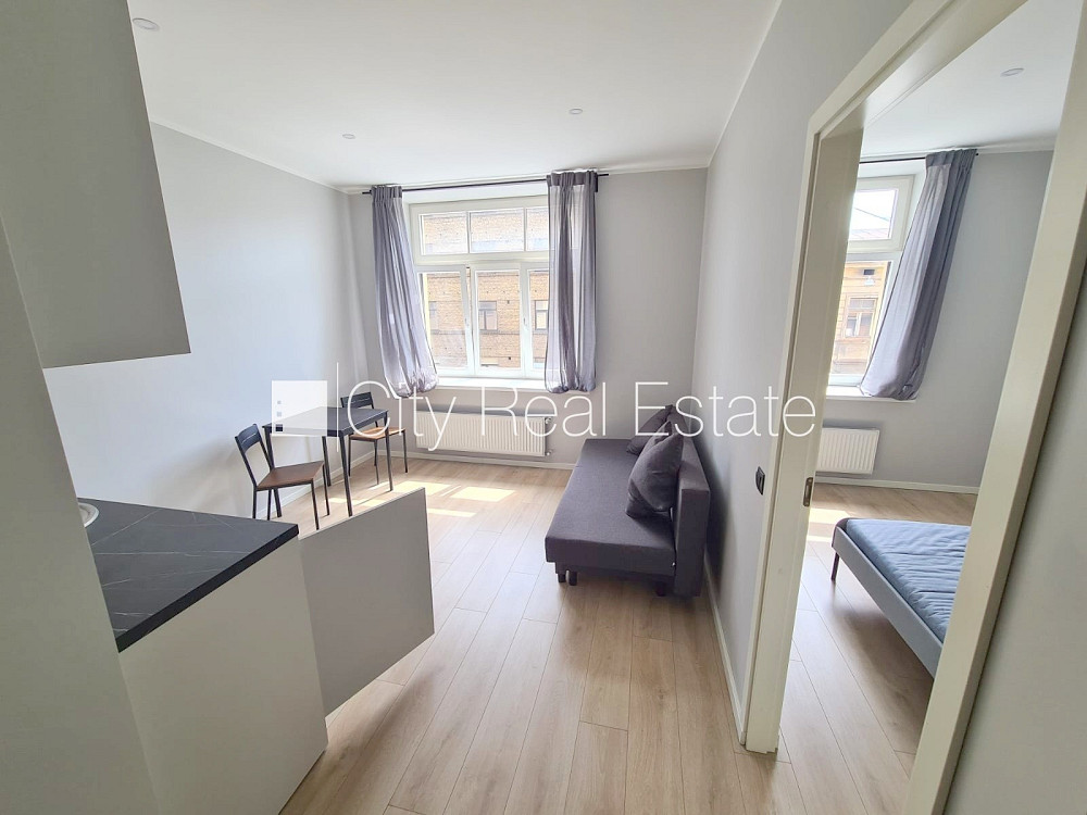 Fasādes māja, renovēta māja, slēgts pagalms, ieeja no ielas un pagalma, kāpņu telpa pēc kapitālā remonta, logi vērsti uz ielas pusi, viena istaba izolēta, studio tipa, virtuve apvienota ar istabu, centrālā apkure, pilnā apdare, plastikāta stikla pakešu logi, krāsotas sienas, jauna santehnika, lamināta parketa grīda, flīžu grīdas segums, sanitārais mezgls apvienots, dušas kabīne, tualete, iebūvēta virtuves iekārta, izvelkamais stūra dīvāns, gulta , virtuves galds, krēsli, skapis, ledusskapis, elektriskā plīts, cepeškrāsns, tvaika nosūcējs, veļas mašīna, slēgta kāpņu telpa, izīrē ar visu bildēs redzamo aprīkojumu, uz 1 gadu, uz 2 gadiem, ar iespēju pagarināt līgumu, atbrīvots, slēdzot īres līgumu, Jums būs jāmaksā par pirmo īres mēnesi , kā arī jāiemaksā drošības depozīts viena mēneša īres maksas apmērā, izvēloties šo īpašumu, komisijas maksa par starpniecības pakalpojumiem ir vienāda ar vienu pusi (50%) no šī īpašuma viena mēneša īres maksas, CITY REAL ESTATE ID - 515998