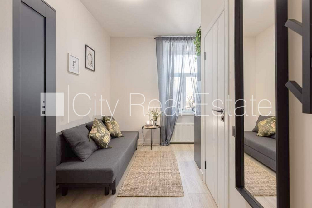 Fasādes māja, renovēta māja, slēgts pagalms, ieeja no ielas un pagalma, kāpņu telpa pēc kapitālā remonta, logi vērsti uz pagalma pusi, studio tipa, virtuve apvienota ar istabu, augstie griesti, centrālā apkure, pilnā apdare, plastikāta stikla pakešu logi, krāsotas sienas, jauna santehnika, lamināta parketa grīda, flīžu grīdas segums, sanitārais mezgls apvienots, dušas kabīne, tualete, iebūvēta virtuves iekārta, dīvāns, gulta , virtuves galds, krēsli, skapis, ledusskapis, elektriskā plīts, cepeškrāsns, tvaika nosūcējs, veļas mašīna, slēgta kāpņu telpa, izīrē ar visu bildēs redzamo aprīkojumu, uz 1 gadu, uz 2 gadiem, ar iespēju pagarināt līgumu, atbrīvots, foto veikts parauga dzīvoklī, projektā vēl pieejami dzīvokļi 30 gab., slēdzot īres līgumu, Jums būs jāmaksā par pirmo īres mēnesi , kā arī jāiemaksā drošības depozīts viena mēneša īres maksas apmērā, izvēloties šo īpašumu, komisijas maksa par starpniecības pakalpojumiem ir vienāda ar vienu pusi (50%) no šī īpašuma viena mēneša īres maksas, CITY REAL ESTATE ID - 515125
