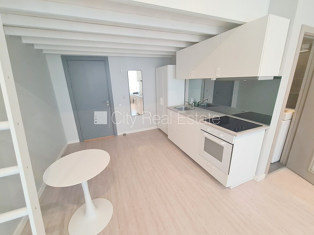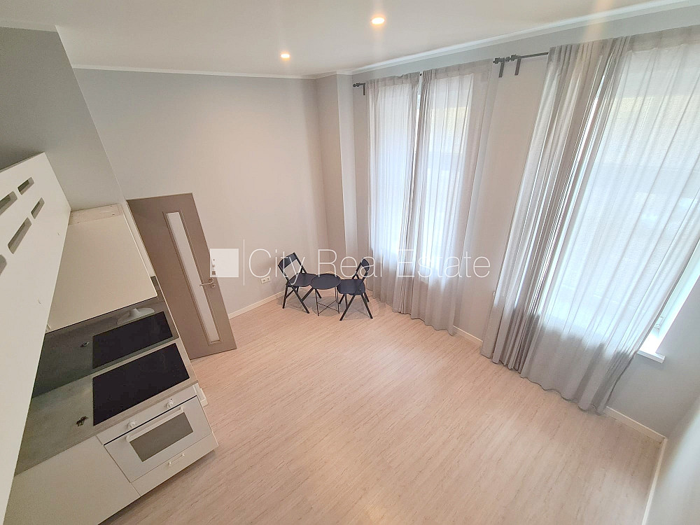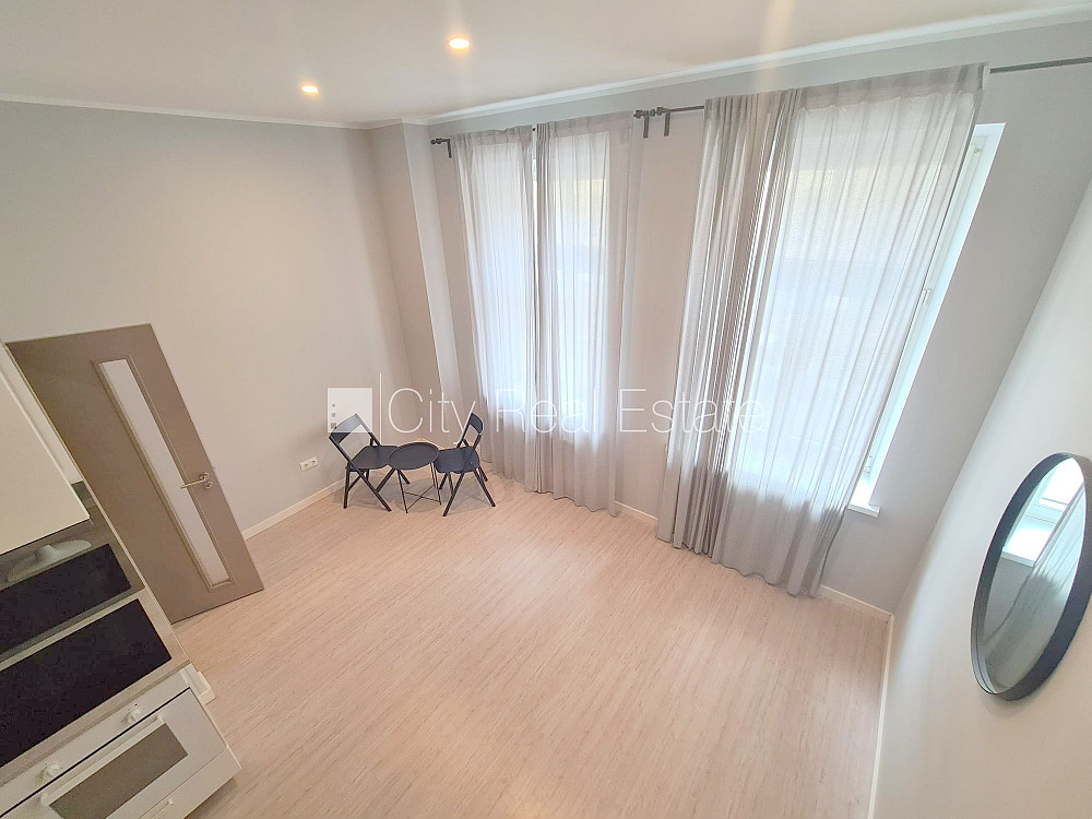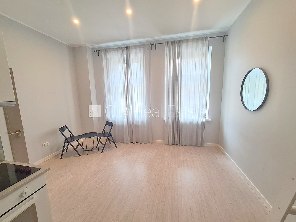 Fasādes māja, renovēta māja, slēgts pagalms, ieeja no ielas, kāpņu telpa pēc kapitālā remonta, logi vērsti uz ielas pusi, divstāvīgs, studio tipa, virtuve apvienota ar istabu, augstie griesti, centrālā apkure, pilnā apdare, koka stikla pakešu logi, krāsotas sienas, jauna santehnika, lamināta parketa grīda, flīžu grīdas segums, sanitārais mezgls apvienots, dušas kabīne, tualete, iebūvēta virtuves iekārta, virtuves galds, krēsli, skapis, ledusskapis, elektriskā plīts, cepeškrāsns, tvaika nosūcējs, veļas mašīna, slēgta kāpņu telpa, uz 1 gadu, ar iespēju pagarināt līgumu, atbrīvots, slēdzot īres līgumu, Jums būs jāmaksā par pirmo īres mēnesi , kā arī jāiemaksā drošības depozīts viena mēneša īres maksas apmērā, izvēloties šo īpašumu, komisijas maksa par starpniecības pakalpojumiem ir vienāda ar vienu pusi (50%) no šī īpašuma viena mēneša īres maksas, CITY REAL ESTATE ID - 515652