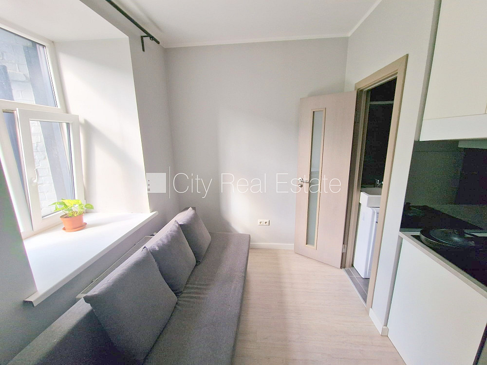 Fasādes māja, renovēta māja, slēgts pagalms, ieeja no ielas, kāpņu telpa pēc kosmētiskā remonta, logi vērsti uz pagalma pusi, studio tipa, virtuve apvienota ar istabu, augstie griesti, centrālā apkure, pilnā apdare, koka stikla pakešu logi, krāsotas sienas, jauna santehnika, lamināta parketa grīda, flīžu grīdas segums, sanitārais mezgls apvienots, dušas kabīne, tualete, iebūvēta virtuves iekārta, dīvāns, virtuves galds, krēsli, skapis, ledusskapis, elektriskā plīts, cepeškrāsns, tvaika nosūcējs, veļas mašīna, kāpņu telpā koda atslēga, atbrīvots, slēdzot īres līgumu, Jums būs jāmaksā par pirmo īres mēnesi , kā arī jāiemaksā drošības depozīts viena mēneša īres maksas apmērā, izvēloties šo īpašumu, komisijas maksa par starpniecības pakalpojumiem ir vienāda ar vienu pusi (50%) no šī īpašuma viena mēneša īres maksas, CITY REAL ESTATE ID - 516612