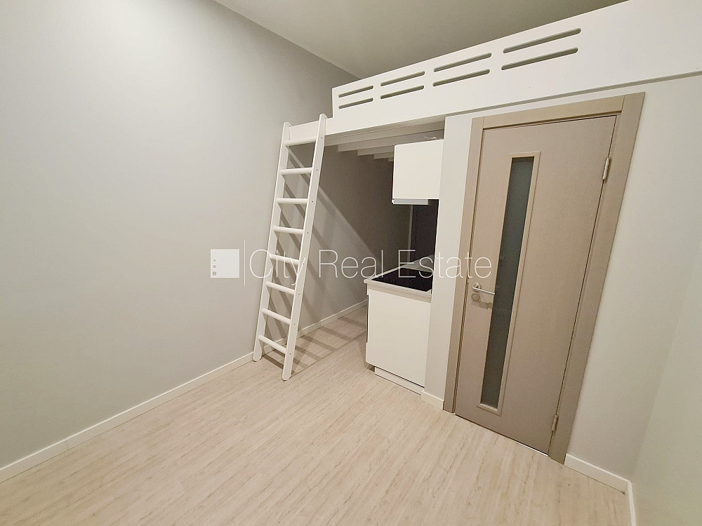 Fasādes māja, renovēta māja, slēgts pagalms, ieeja no ielas, kāpņu telpa pēc kapitālā remonta, logi vērsti uz pagalma pusi, divstāvīgs, studio tipa, virtuve apvienota ar istabu, augstie griesti, centrālā apkure, pilnā apdare, plastikāta stikla pakešu logi, krāsotas sienas, jauna santehnika, lamināta parketa grīda, flīžu grīdas segums, sanitārais mezgls apvienots, dušas kabīne, tualete, iebūvēta virtuves iekārta, dīvāns, virtuves galds, krēsli, skapis, ledusskapis, elektriskā plīts, cepeškrāsns, tvaika nosūcējs, veļas mašīna, slēgta kāpņu telpa, izīrē ar visu bildēs redzamo aprīkojumu, atbrīvots, slēdzot īres līgumu, Jums būs jāmaksā par pirmo īres mēnesi , kā arī jāiemaksā drošības depozīts viena mēneša īres maksas apmērā, izvēloties šo īpašumu, komisijas maksa par starpniecības pakalpojumiem ir vienāda ar vienu pusi (50%) no šī īpašuma viena mēneša īres maksas, CITY REAL ESTATE ID - 511342
