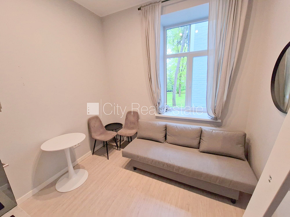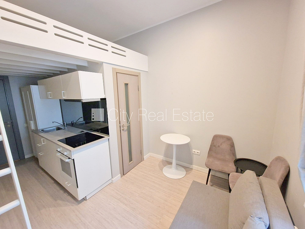 Fasādes māja, renovēta māja, slēgts pagalms, ieeja no ielas, kāpņu telpa pēc kapitālā remonta, logi vērsti uz pagalma pusi, divstāvīgs, studio tipa, virtuve apvienota ar istabu, augstie griesti, centrālā apkure, pilnā apdare, koka stikla pakešu logi, krāsotas sienas, jauna santehnika, lamināta parketa grīda, flīžu grīdas segums, sanitārais mezgls atsevišķs, dušas kabīne, tualete, iebūvēta virtuves iekārta, dīvāns, virtuves galds, krēsli, skapis, ledusskapis, elektriskā plīts, cepeškrāsns, tvaika nosūcējs, veļas mašīna, slēgta kāpņu telpa, izīrē ar visu bildēs redzamo aprīkojumu, atbrīvots, slēdzot īres līgumu, Jums būs jāmaksā par pirmo īres mēnesi , kā arī jāiemaksā drošības depozīts viena mēneša īres maksas apmērā, izvēloties šo īpašumu, komisijas maksa par starpniecības pakalpojumiem ir vienāda ar vienu pusi (50%) no šī īpašuma viena mēneša īres maksas, CITY REAL ESTATE ID - 513633