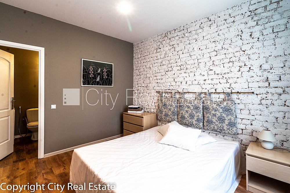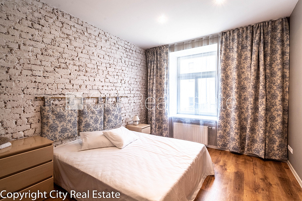 Fasādes māja, renovēta māja, slēgts pagalms, iespēja nomāt autostāvvietu, ieeja no ielas, beletāža, kāpņu telpa pēc kapitālā remonta, logi vērsti uz pagalma pusi, guļamistabu skaits 2 gab., istabas izolētas 2 gab., studio tipa, virtuve apvienota ar viesistabu, garderobe 2 gab., augstie griesti, radiatori ar termoregulatoriem, kamīns, gāzes apkure, koka stikla pakešu logi, jauna santehnika, iebūvēti gaismas ķermeņi, lamināta parketa grīda, flīžu grīdas segums, vannas istabu skaits 2 gab., divi sanitārie mezgli, vanna, dušas kabīne, iebūvēta virtuves iekārta, iebūvēti sienas skapji, trauku mazgājamā mašīna, internets, kabeļtelevīzija, diennakts videonovērošana, video domofons, slēgta kāpņu telpa, kāpņu telpā koda atslēga, izīrē ar visu bildēs redzamo aprīkojumu, gultas veļa, trauki, līdz parkam 700 m, stratēģiski izdevīga vieta, CITY REAL ESTATE ID - 426636