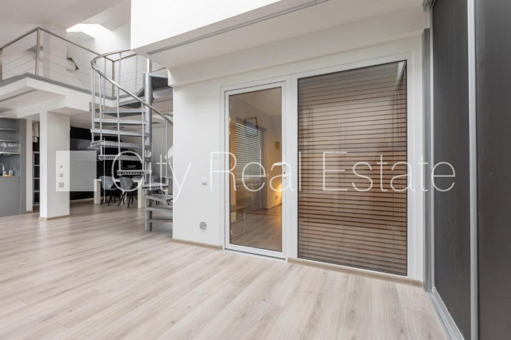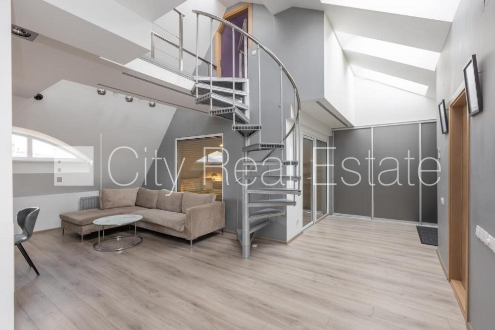Fasādes māja, ieeja no ielas, kāpņu telpa pēc kapitālā remonta, terase, logi vērsti mājas abās pusēs, plašs skats no loga, gaisa ventilācijas sistēma, istabas izolētas 2 gab., studio tipa, virtuve apvienota ar istabu, slīpie griesti, augstie griesti, gāzes apkure, boilers karstajam ūdenim, divos līmeņos, pilnā apdare, lielie skatlogi, plastikāta stikla pakešu logi, metāla durvis, parketa grīda, flīžu grīdas segums, sanitārais mezgls apvienots, dušas kabīne, iebūvēta virtuves iekārta, iebūvēti sienas skapji, gaisa kondicionieris, televizors, ledusskapis, trauku mazgājamā mašīna, elektriskā plīts, cepeškrāsns, tvaika nosūcējs, dūmu detektors, kāpņu telpā koda atslēga, izīrē ar visu bildēs redzamo aprīkojumu, atbrīvots, stratēģiski izdevīga vieta, CITY REAL ESTATE ID - 516957