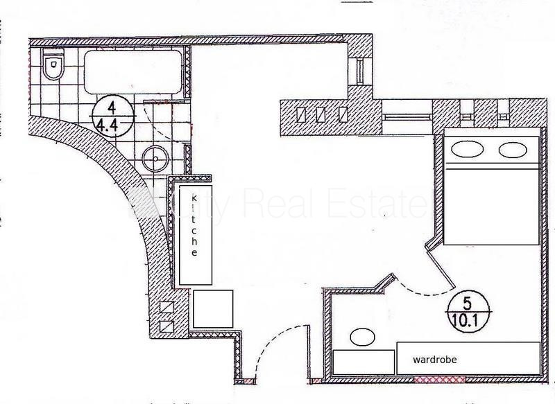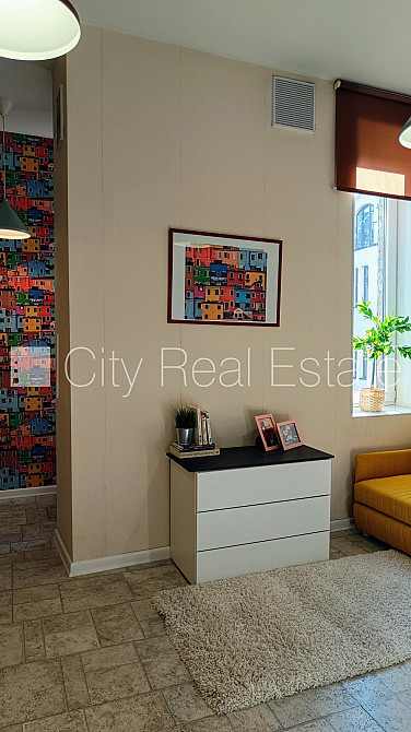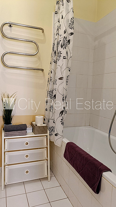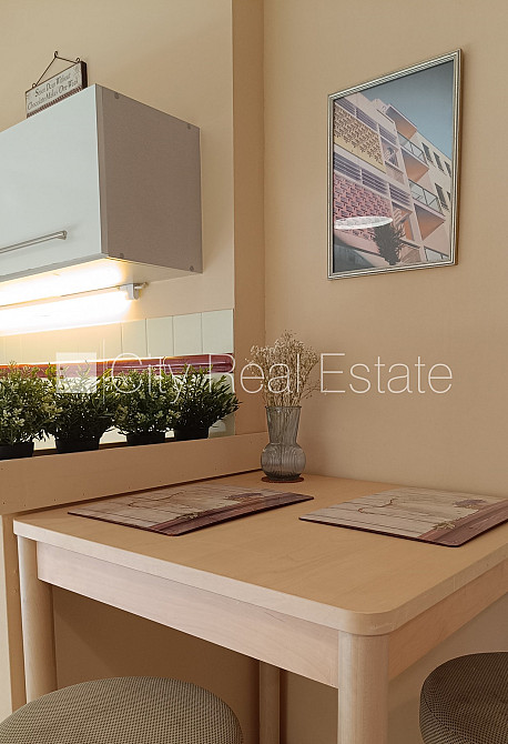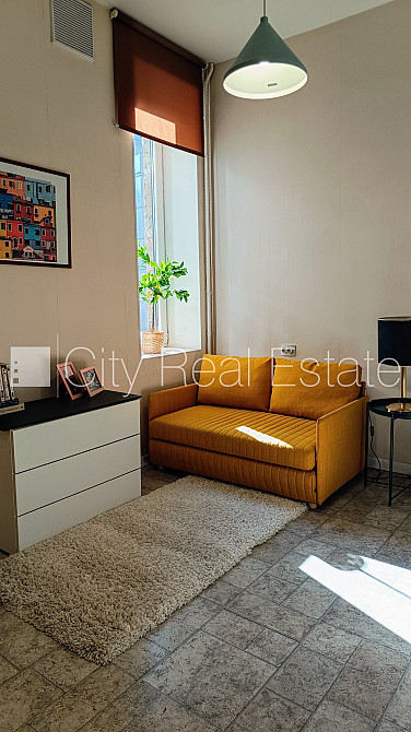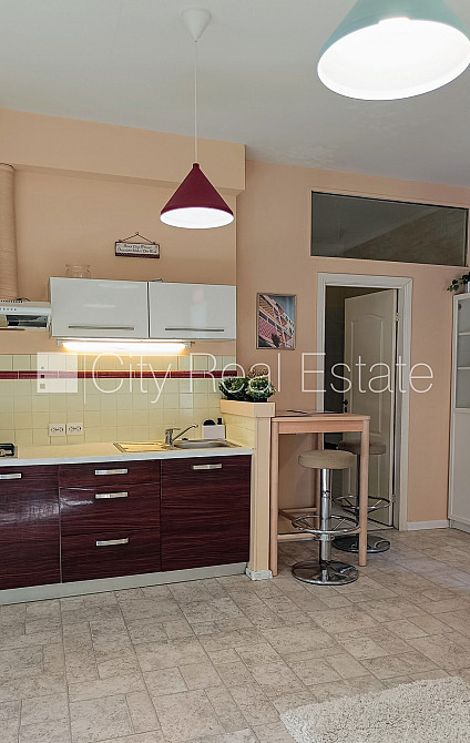 Fasādes māja, ieeja no ielas, ir lifts, kāpņu telpa pēc kosmētiskā remonta, logi vērsti uz pagalma pusi, guļamistabu skaits 1 gab., studio tipa, virtuve apvienota ar viesistabu, centrālā apkure, pilnā apdare, plastikāta stikla pakešu logi, krāsotas sienas, jauna santehnika, flīžu grīdas segums, sanitārais mezgls apvienots, iebūvēta virtuves iekārta, divguļamā gulta, krēsli, atpūtas krēsli, bāra lete, skapis, televizors, ledusskapis, gāzes plīts, veļas mašīna, internets, kabeļtelevīzija, kāpņu telpā koda atslēga, spilveni, segas, trauki, slēdzot īres līgumu, Jums būs jāmaksā par pirmo īres mēnesi , kā arī jāiemaksā drošības depozīts viena mēneša īres maksas apmērā, izvēloties šo īpašumu, komisijas maksa par starpniecības pakalpojumiem ir vienāda ar vienu pusi (50%) no šī īpašuma viena mēneša nomas maksas, CITY REAL ESTATE ID - 426738